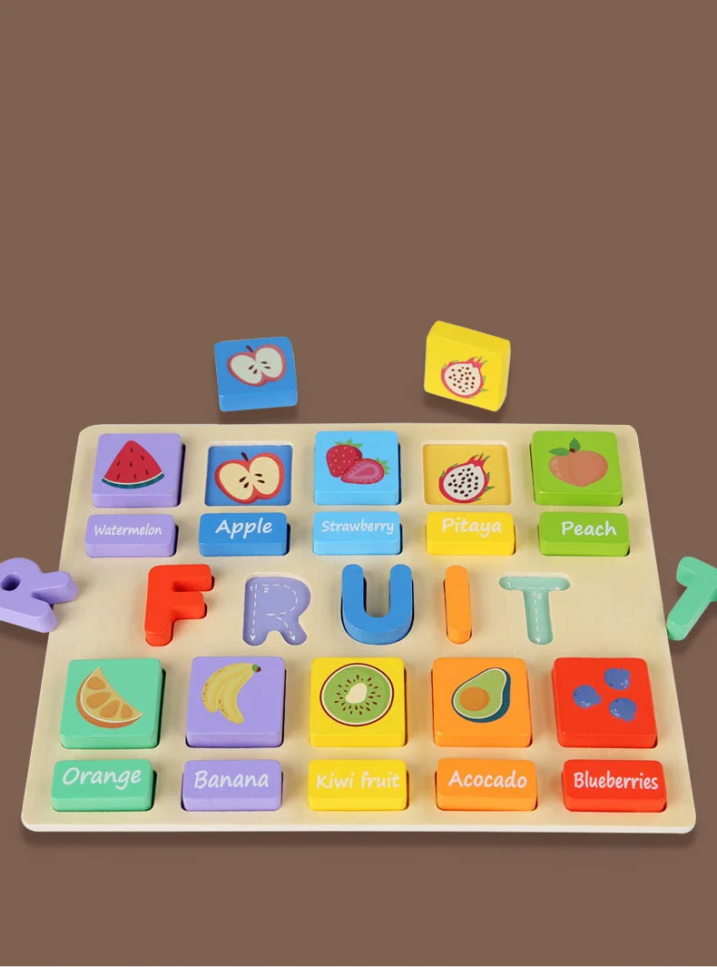 Wooden Dinosaur Fruit Cognition Matching Puzzle for Kids Kindergarten Hand Grip Board for Kitchen Learning