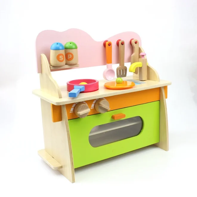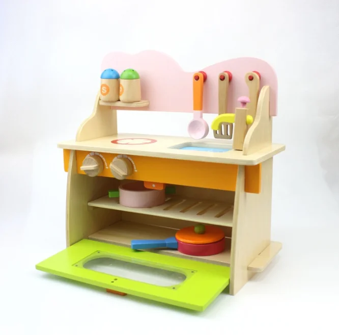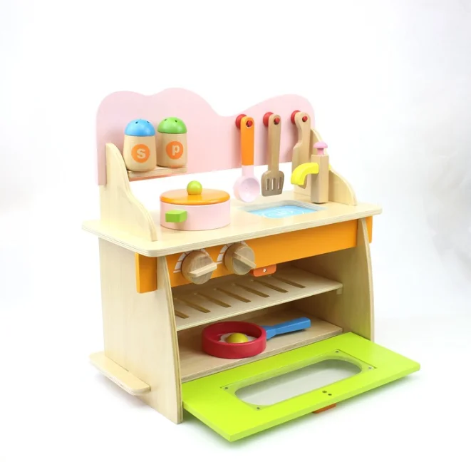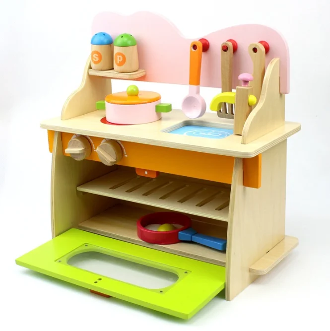 Wholesale Cute Funny Miniature Kitchen Set for Kids Real Kitchen Design Wood Cooking Play Toy