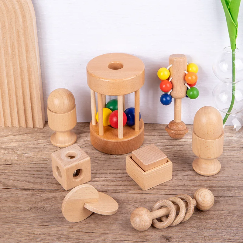 Wholesale Educational DIY Toddler Toys Baby Rattle Wood Montessori Toy