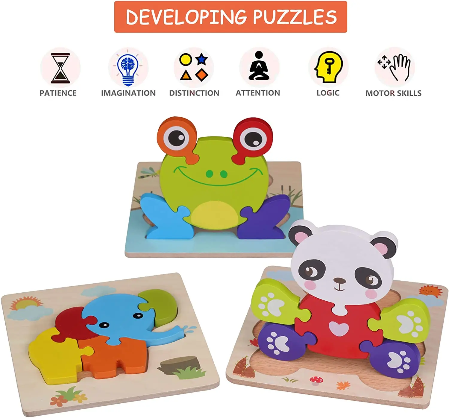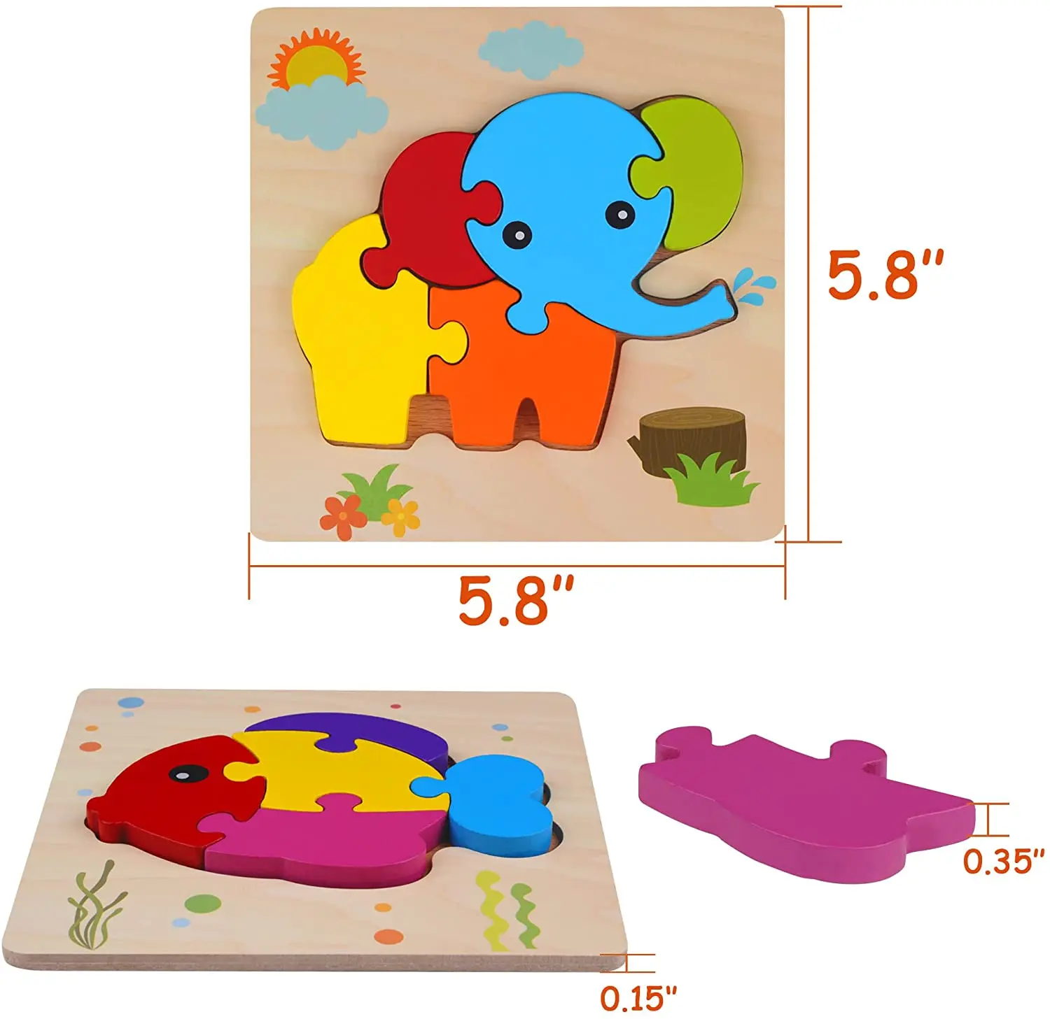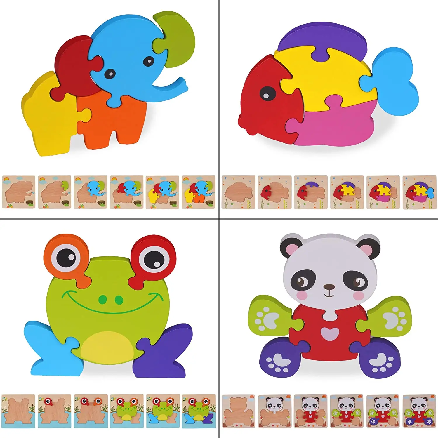 High Quality Educational DIY Toy 3D Animal Shapes Wooden Jigsaw Puzzle for Kids Natural Wooden Animal Puzzle