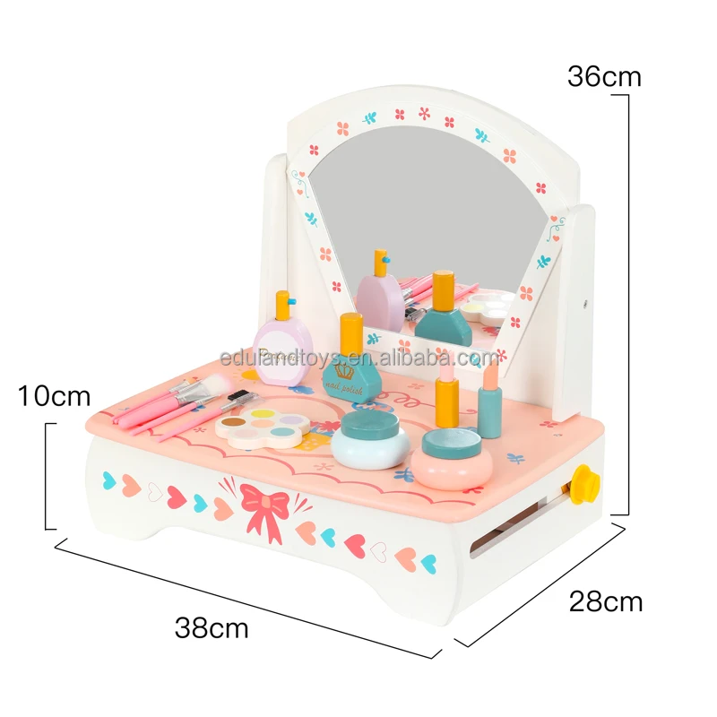 Strawberry Girls Design Wooden Vanity Kids Pretend Play Makeup Toy Mini Children Dressing Table Educational Feature Preschool