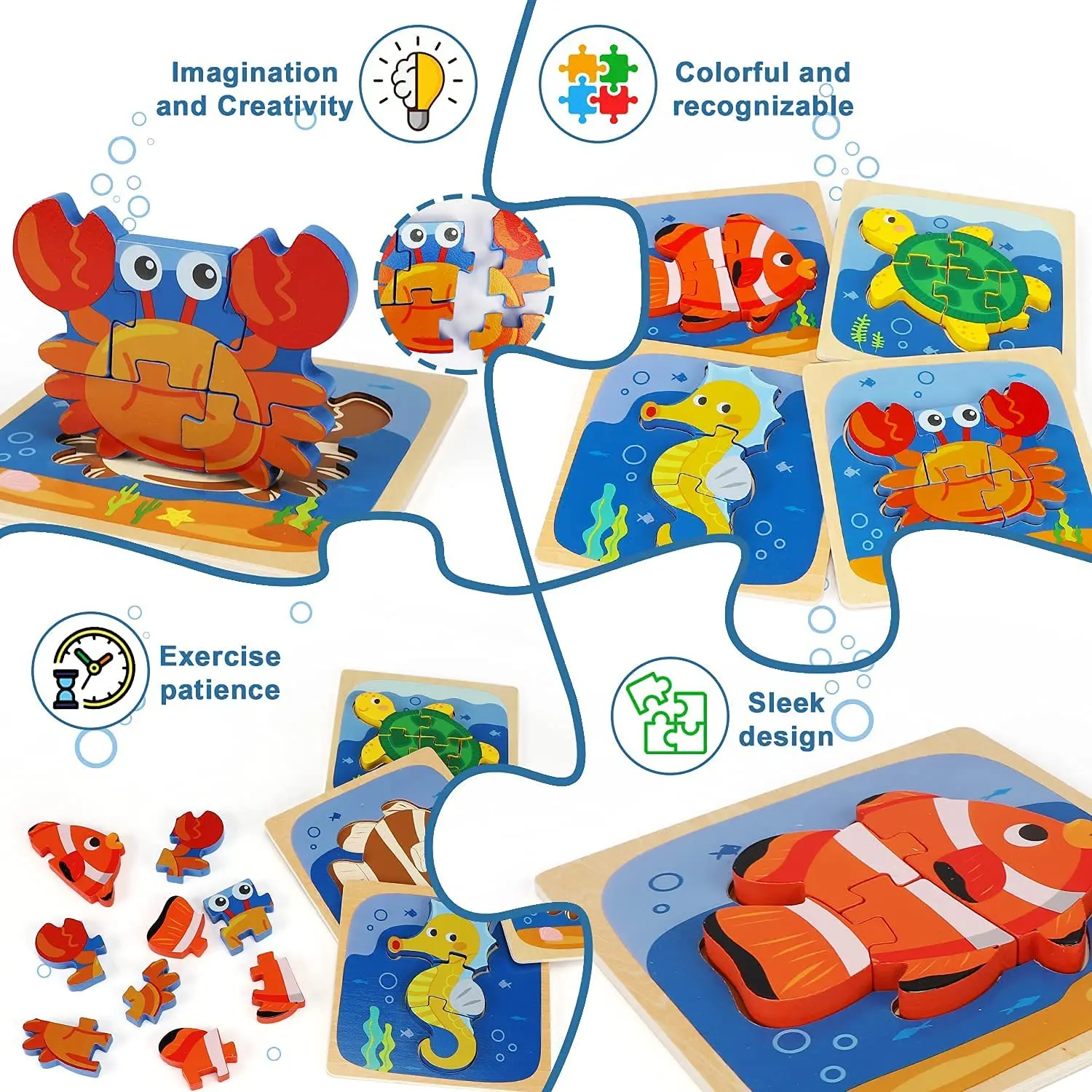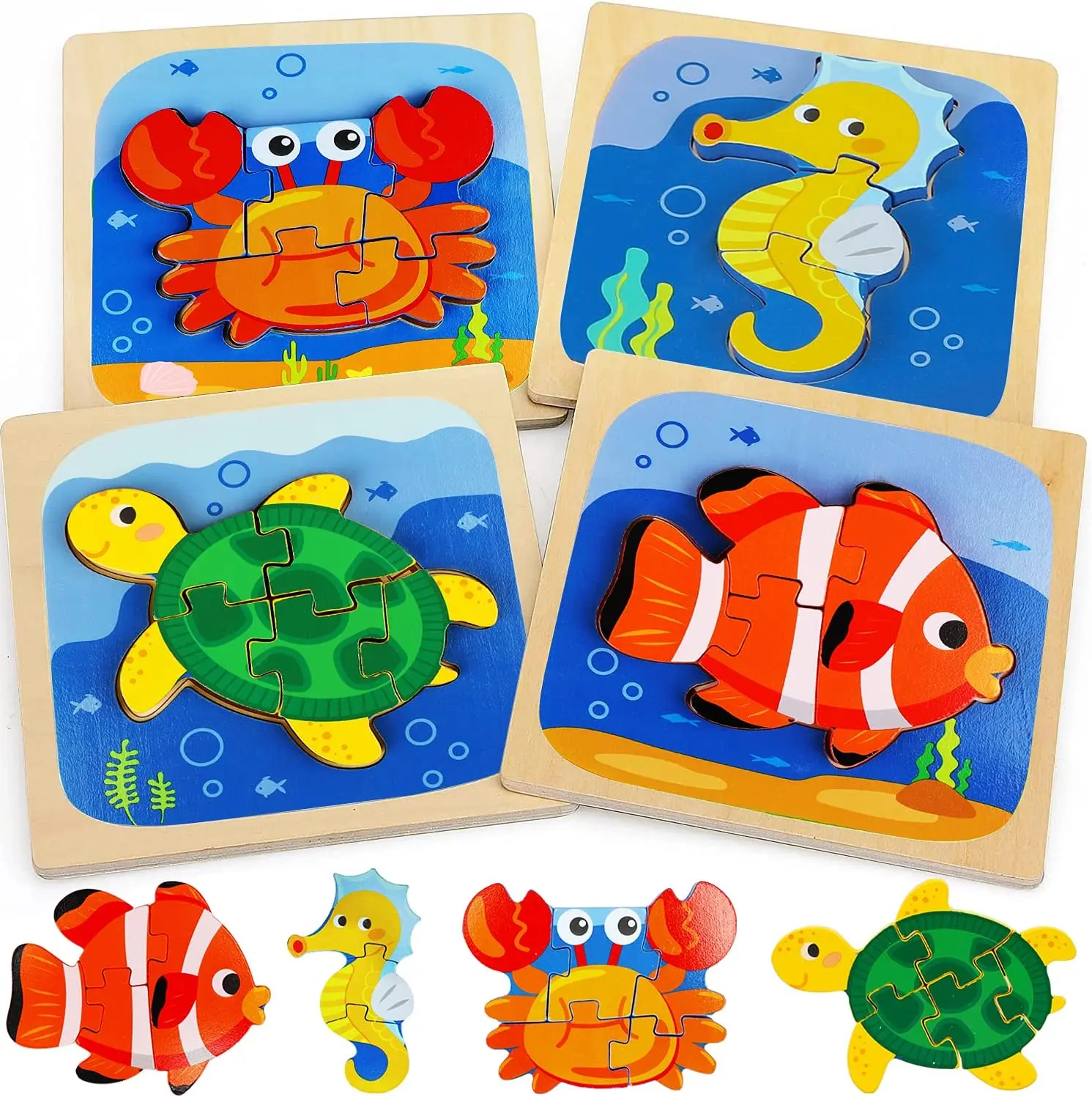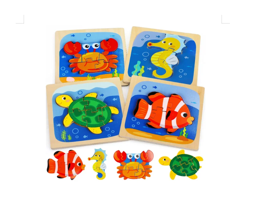 2026 Hot Sales 4 Pack Animal Shape Montessori Wooden Puzzles Educational and DIY Toys for Kids