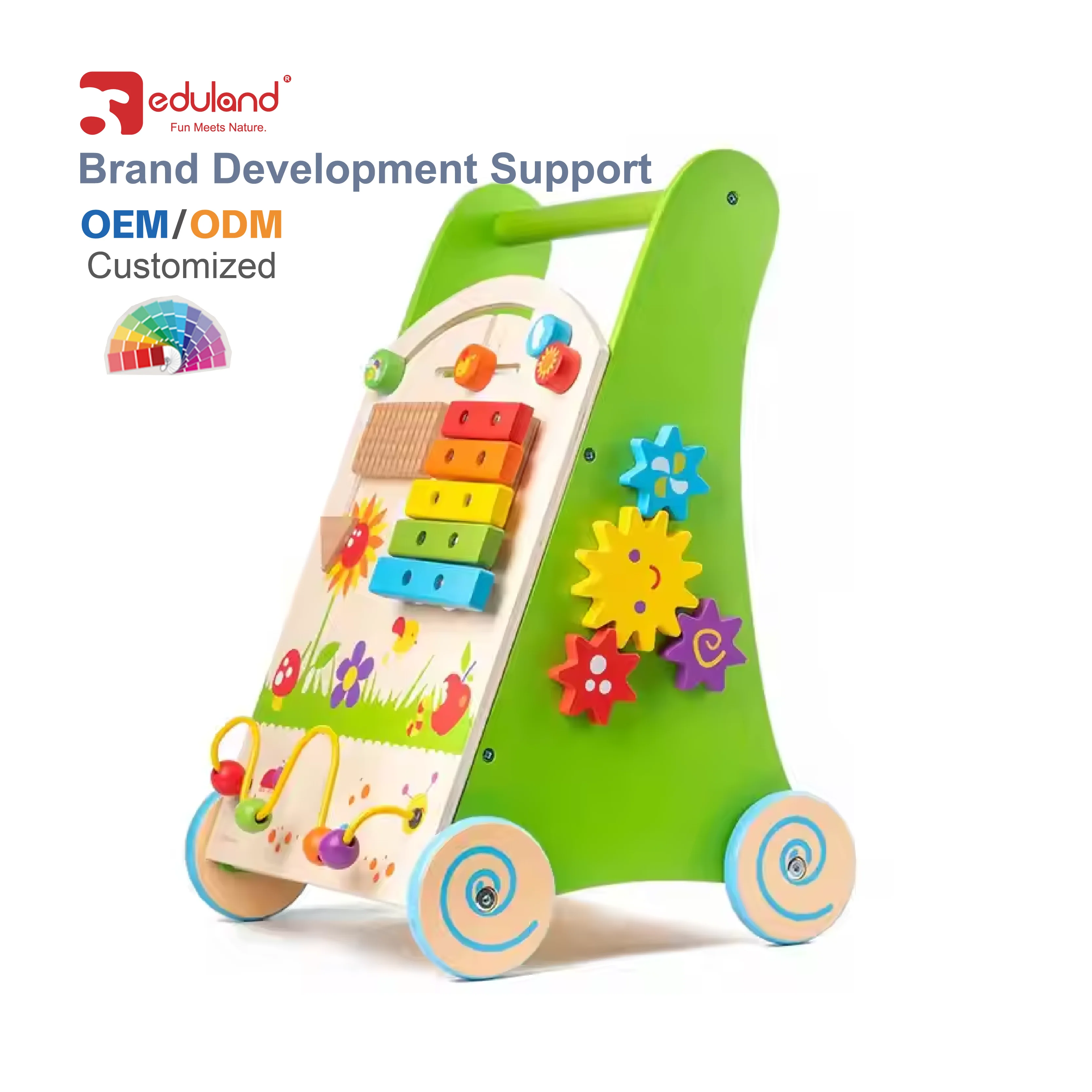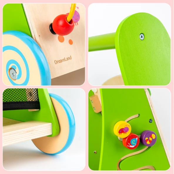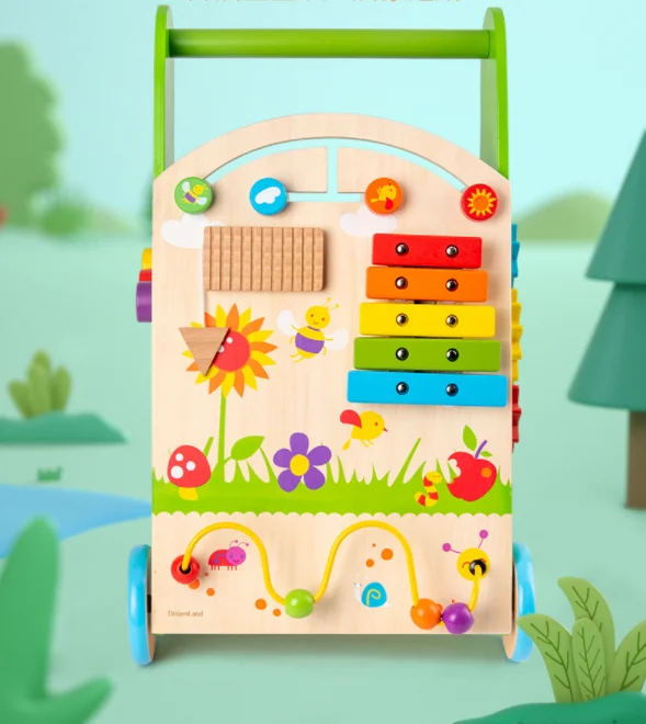 Solid Wood Multifunctional Baby Walker for 2-4 Years New Educational Toddler Trolley Toy