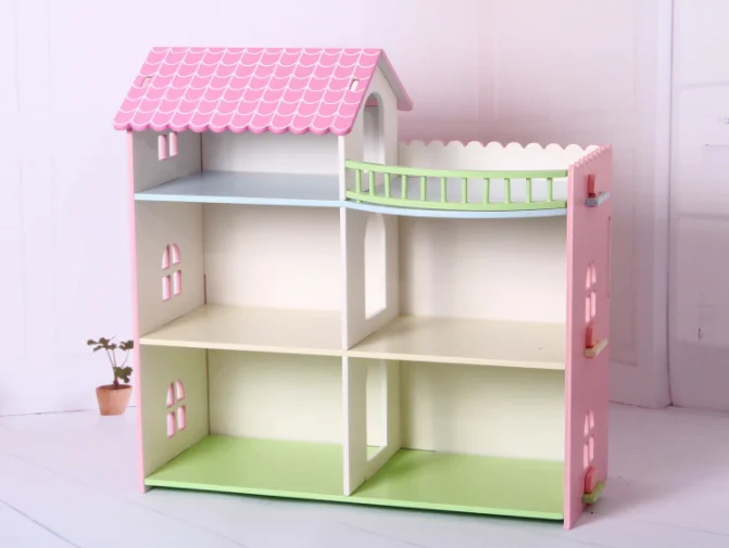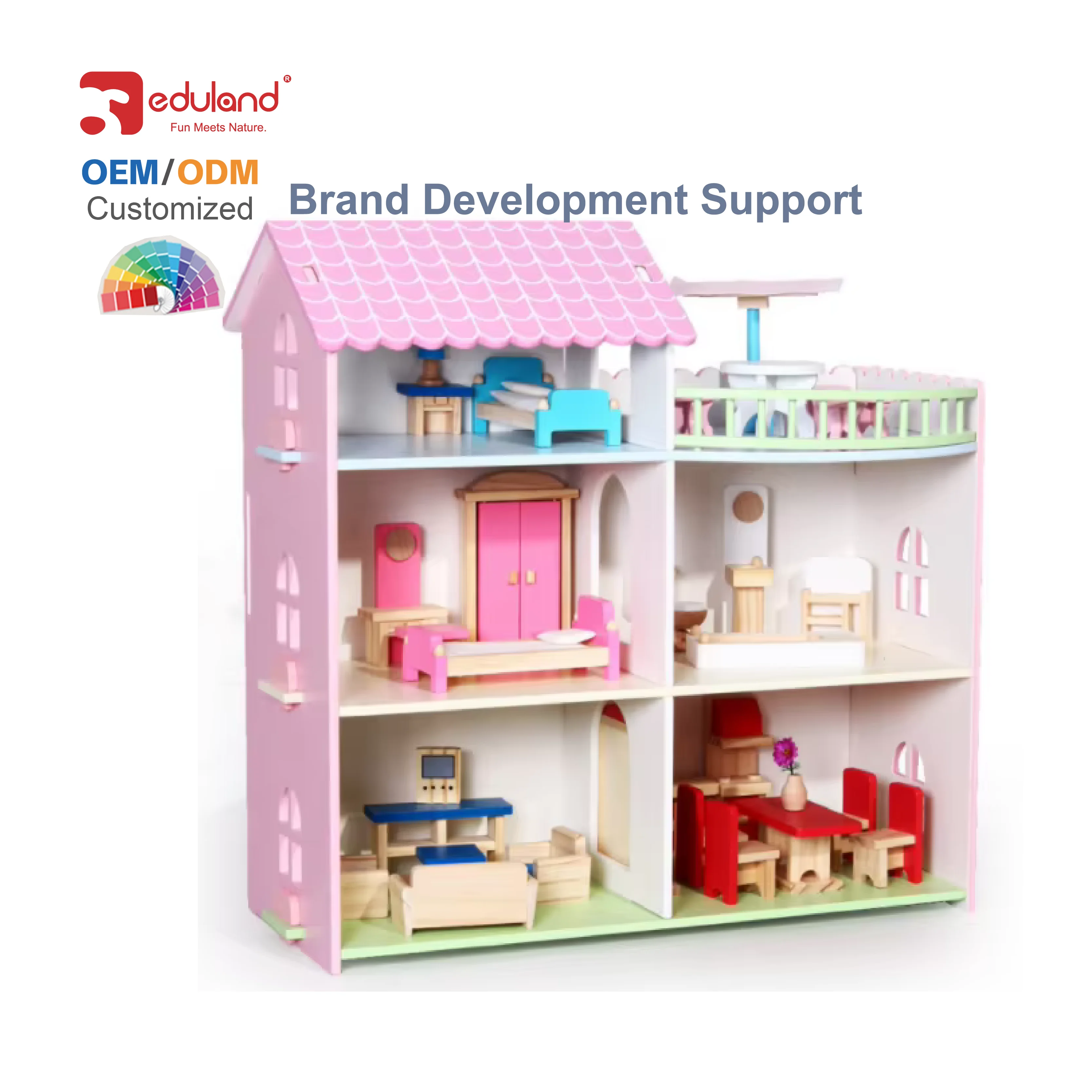 Pink Indoor Children's Game Toys Imaginative Wood Doll House with Furnitures Manufacture's Design