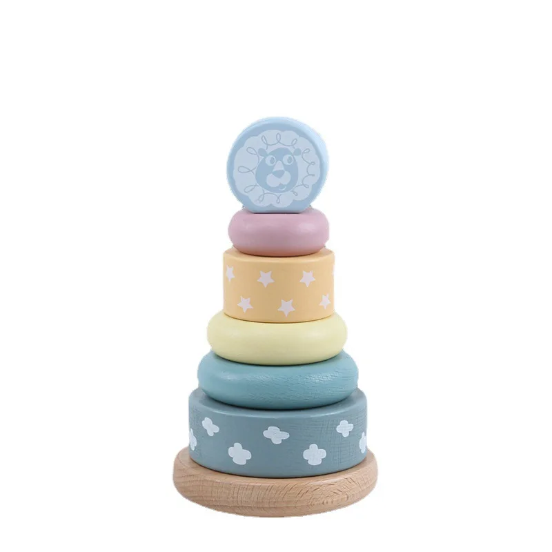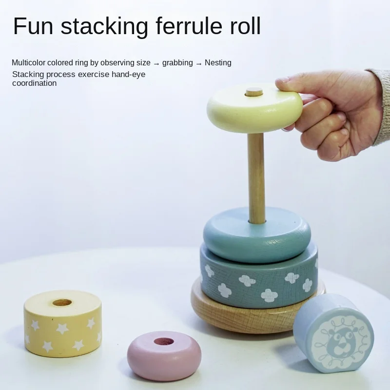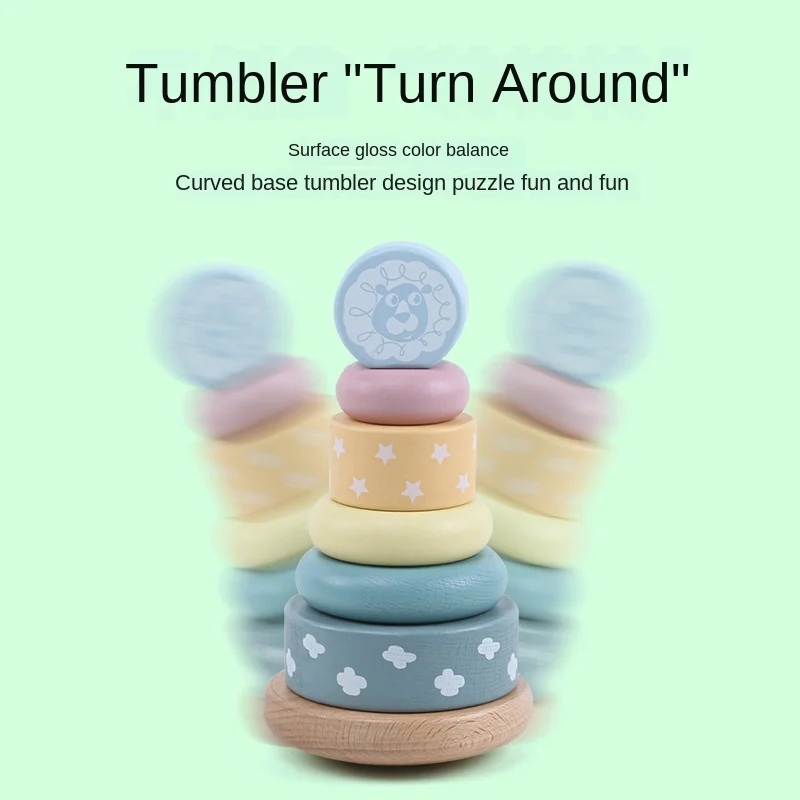 Large Assembled Wooden ABS Building Block Set Early Cognitive Educational Toy Cross-Border Rainbow Tower Tumbler for Children