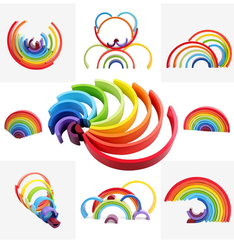 Rainbow Balance Stacker Creative Montessori Educational Building Blocks Fun Wooden Toys for Children to Develop Skills