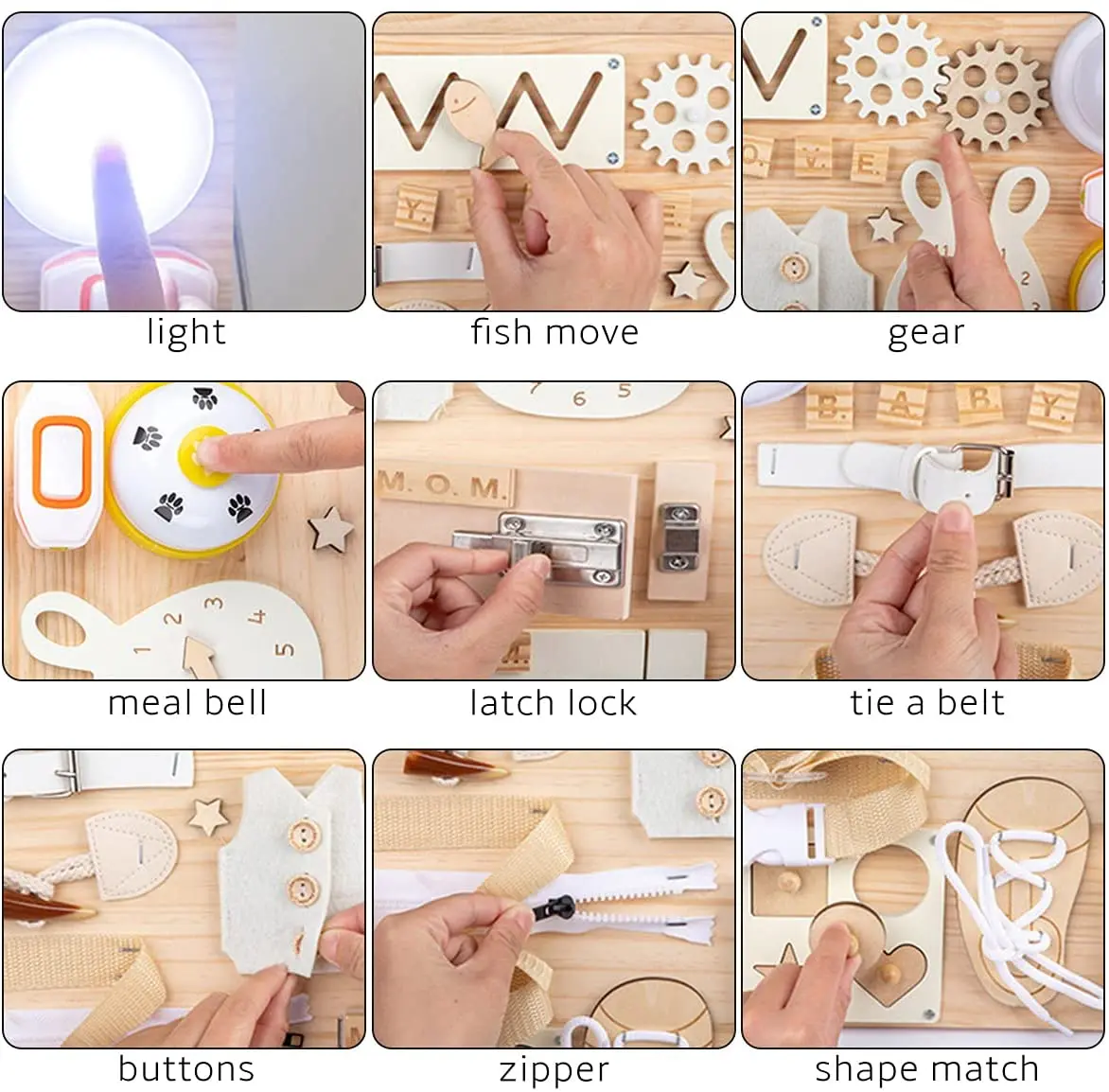 Unisex Montessori Busy Board Wooden Toys for Preschoolers Sensory Toddler Activities for Kids 2 to 4 Years