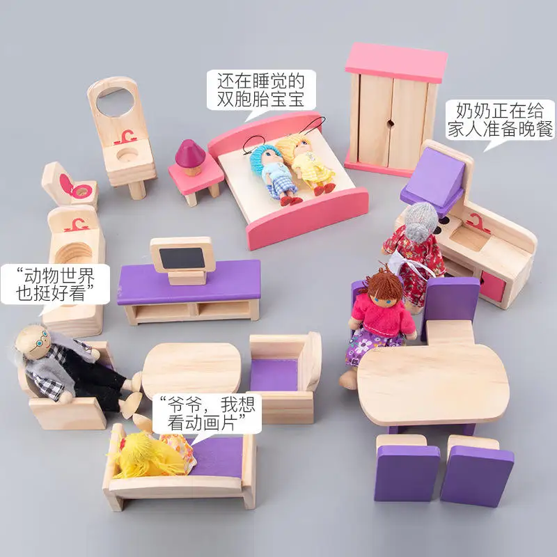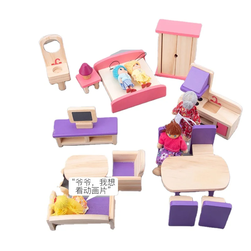 Girl Play DIY Wooden Toy Set Family Simulation Furniture for Children Children's Wooden Doll House