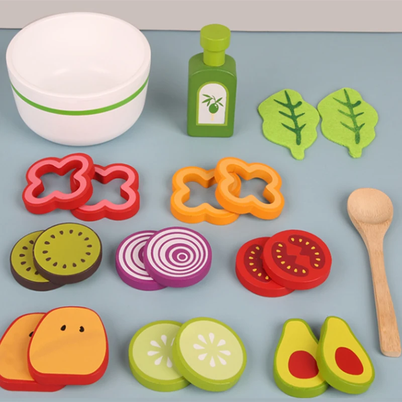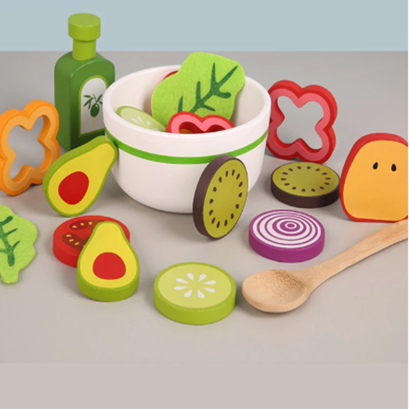 EDULAND Wooden Fruits Vegetables Mix Salad Toys Children Role Play Set