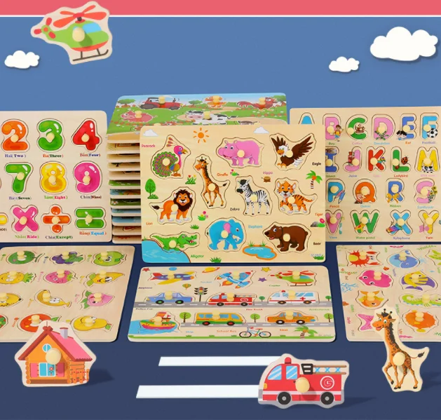 EDULAND Kids' Educational DIY Wooden Alphabet Jigsaw Puzzle Board 3D Puzzle Tool Toy for Learning