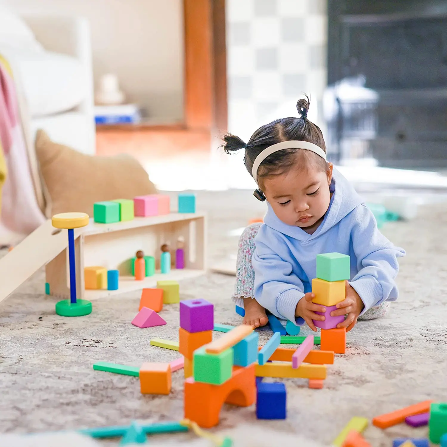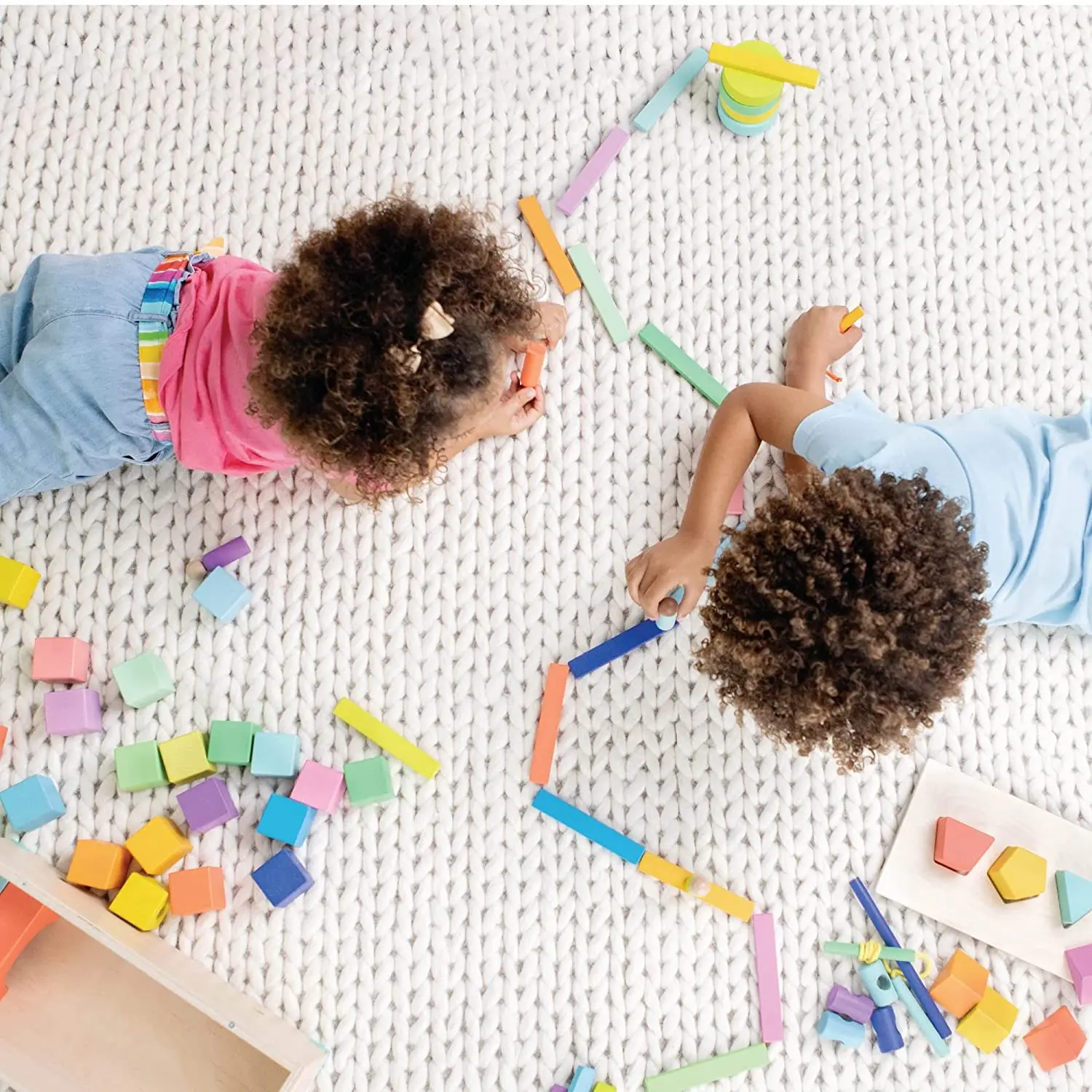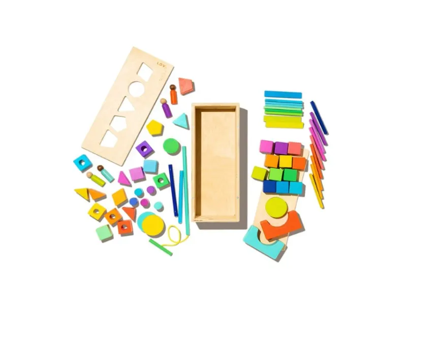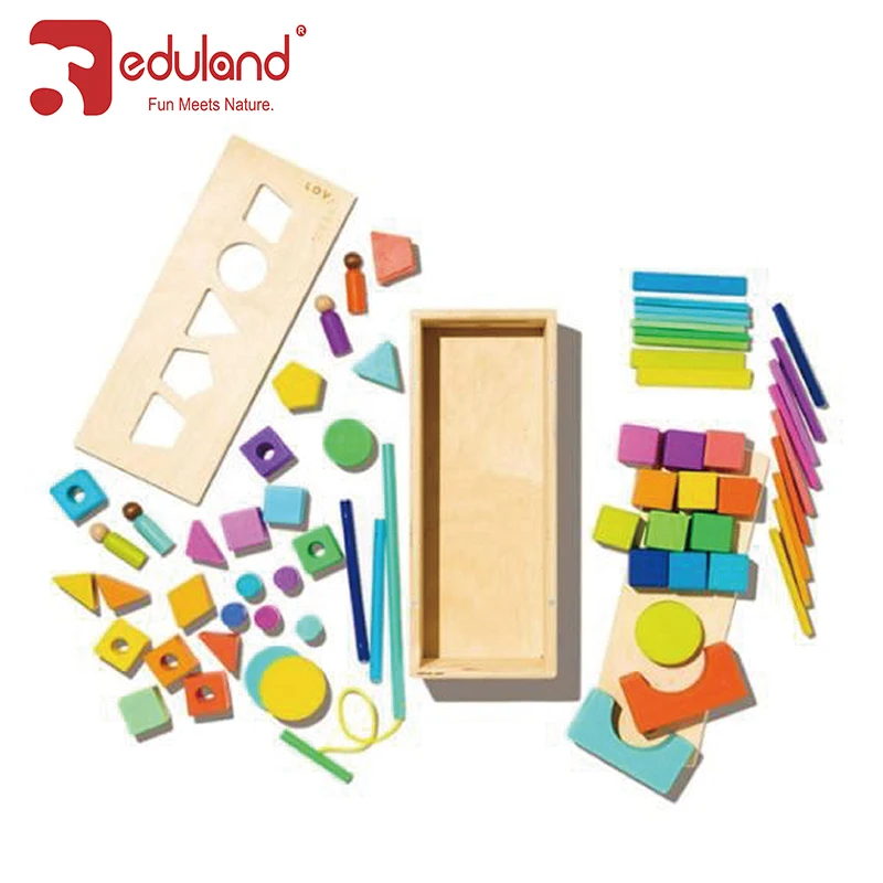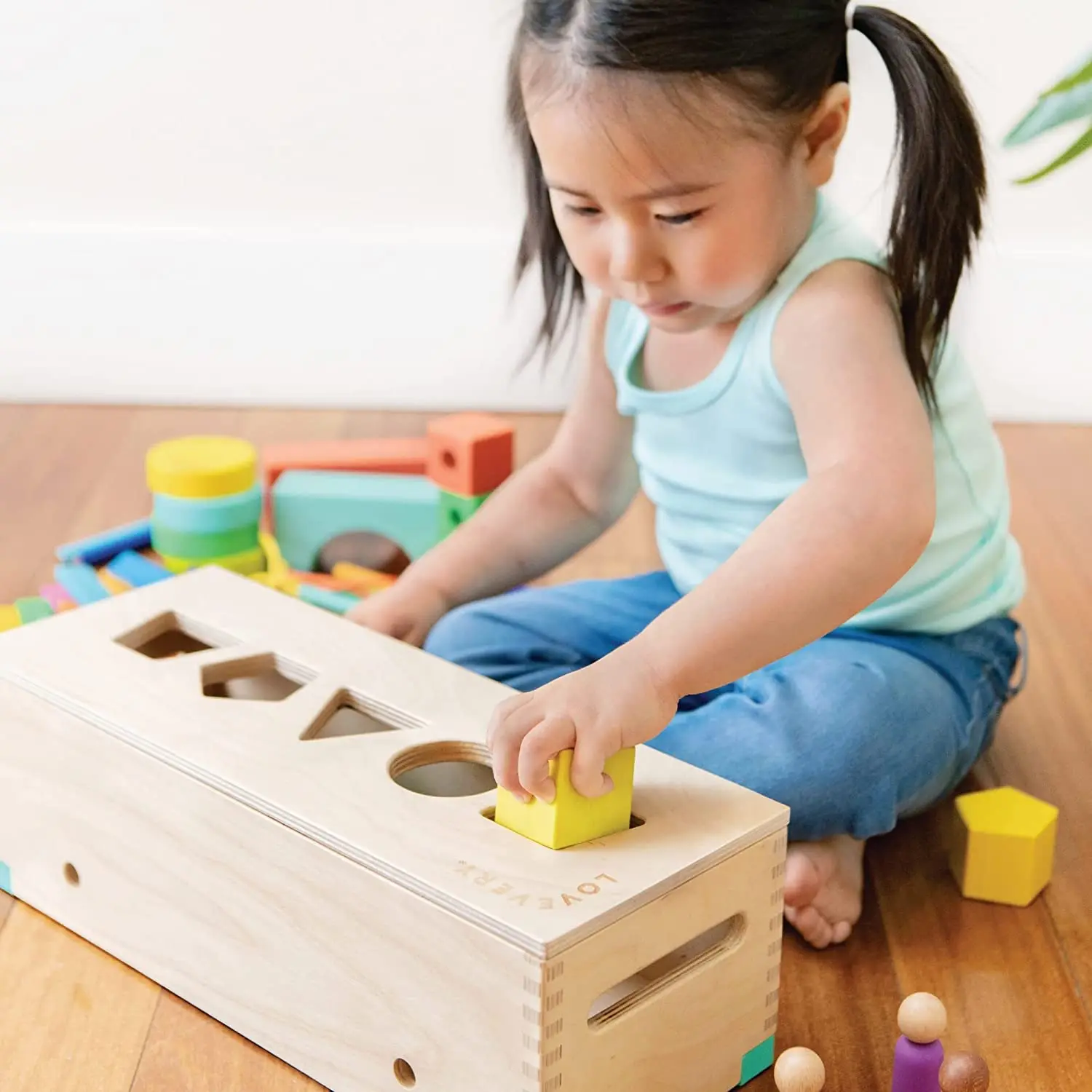 Kids Educational Wooden Building Blocks & Shapes + Wooden Storage Box Wooden Toys
