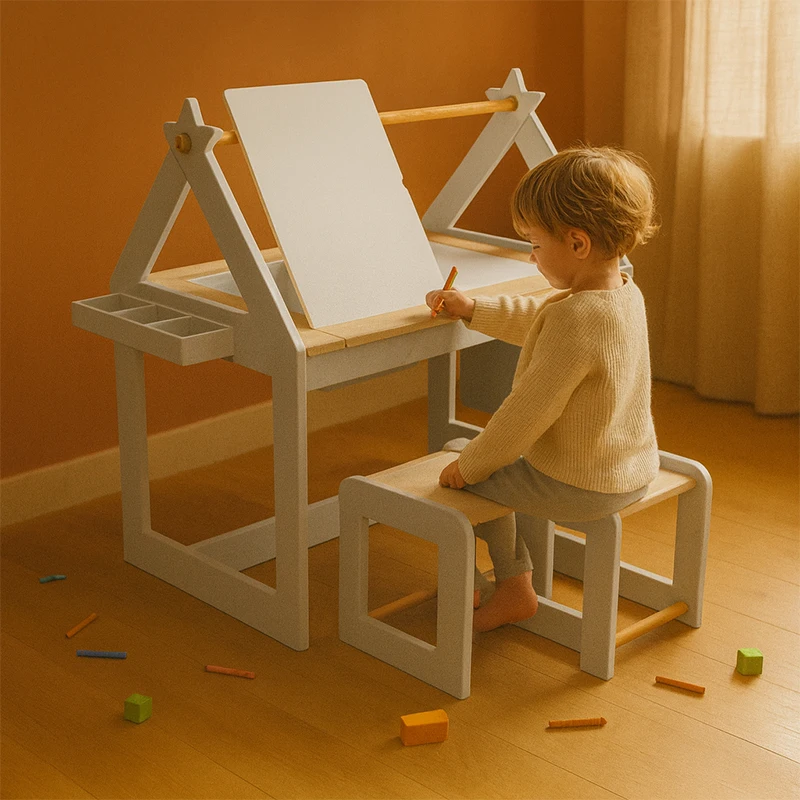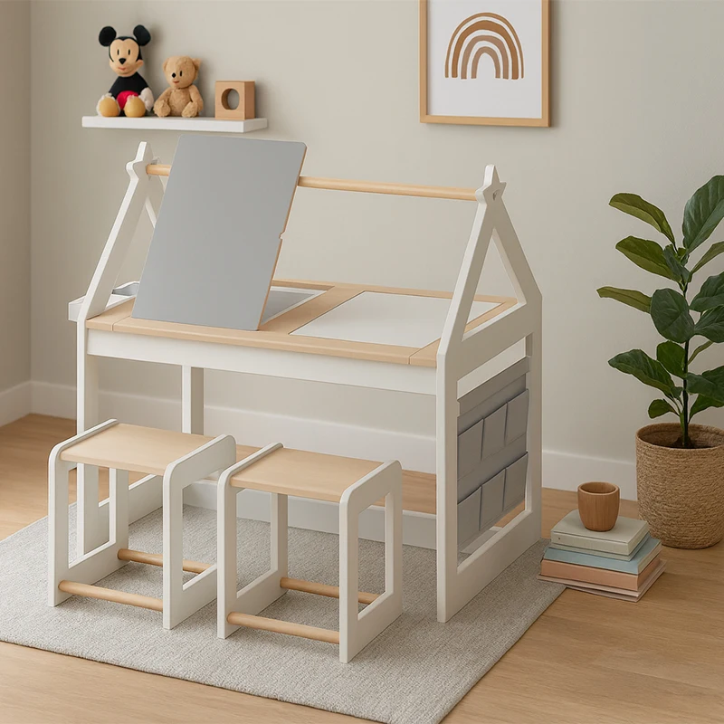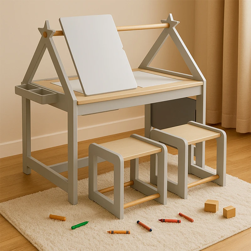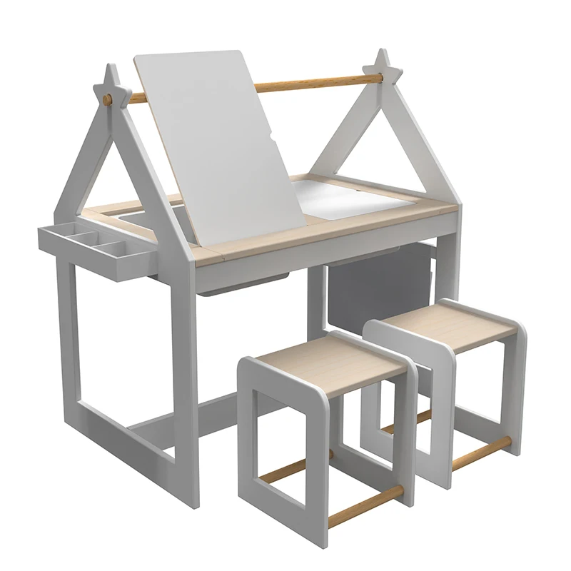 Eduland Montessori Furniture Educational Table Toys Sensory Activity Table Set for Kids Multifunction Wooden Art 2 Stools Sand