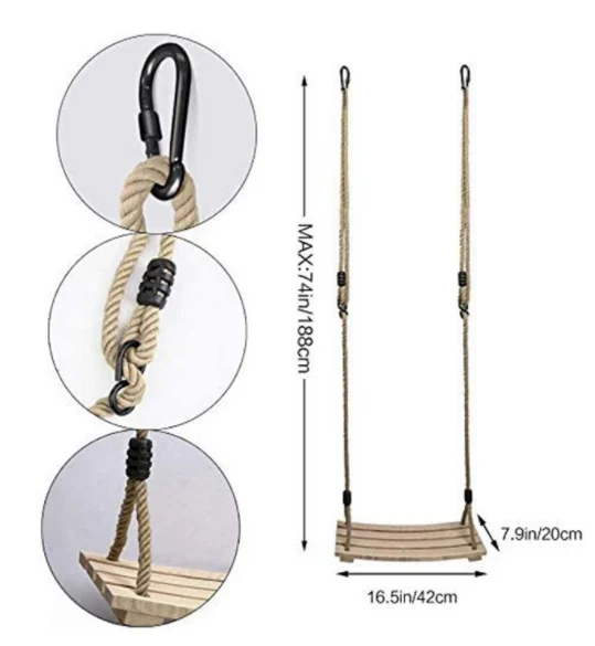 EDULAND Children and Adult Indoor/Outdoor Wood Tree Swing Seat Stylish Outdoor Play Toy Swing Set