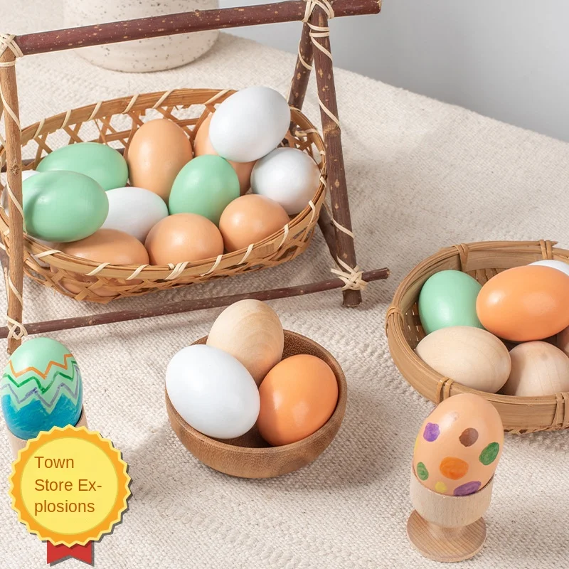 Stock DIY Painted Wooden Eggs Creative Duck Eggs for Children 2-4 Years Supports Hair Generation for Easter