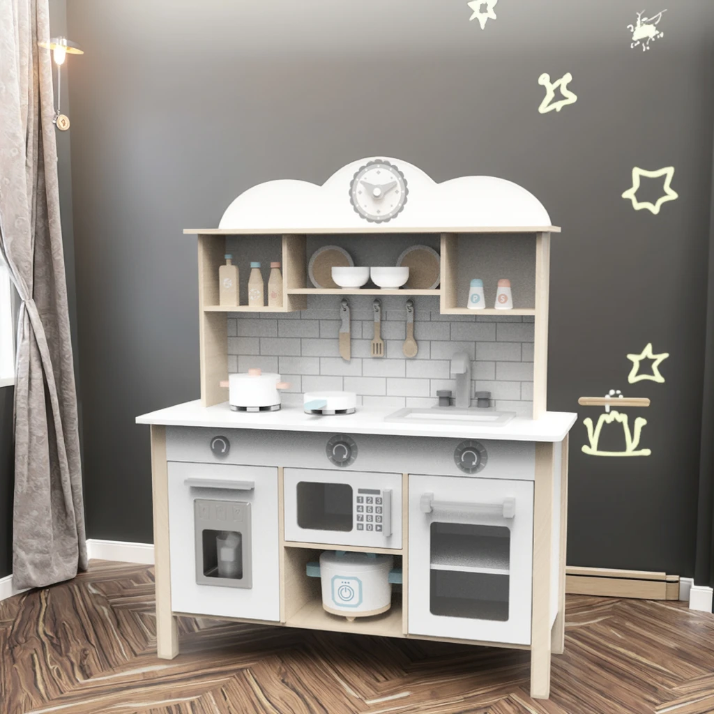 Unisex Wooden TOYS Modern Wooden Kitchen Set Multifunctional Induction Cooker Food Toy Multifunctional Educational Kids