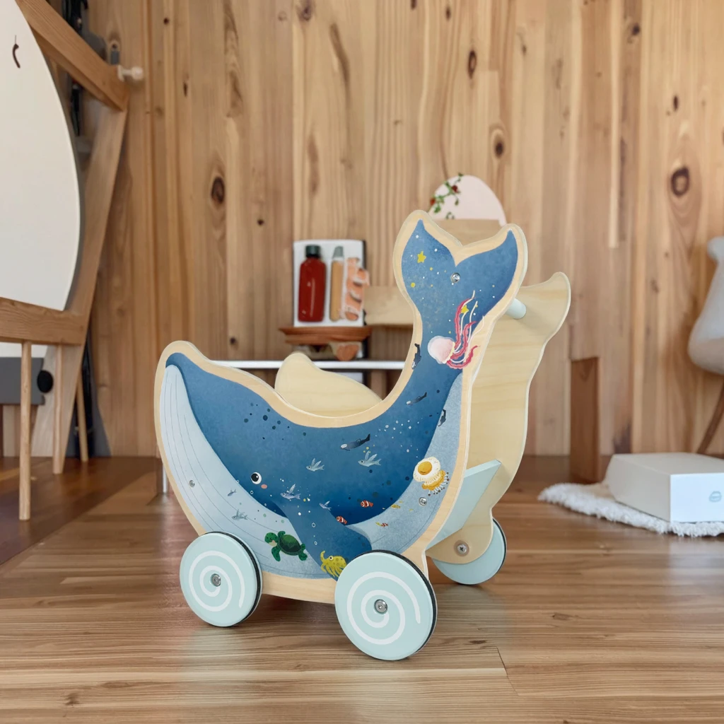 Baby Walker Modern Wooden Whale Walker for Unisex Kids 12M+ Multifunctional Induction Educational Toy