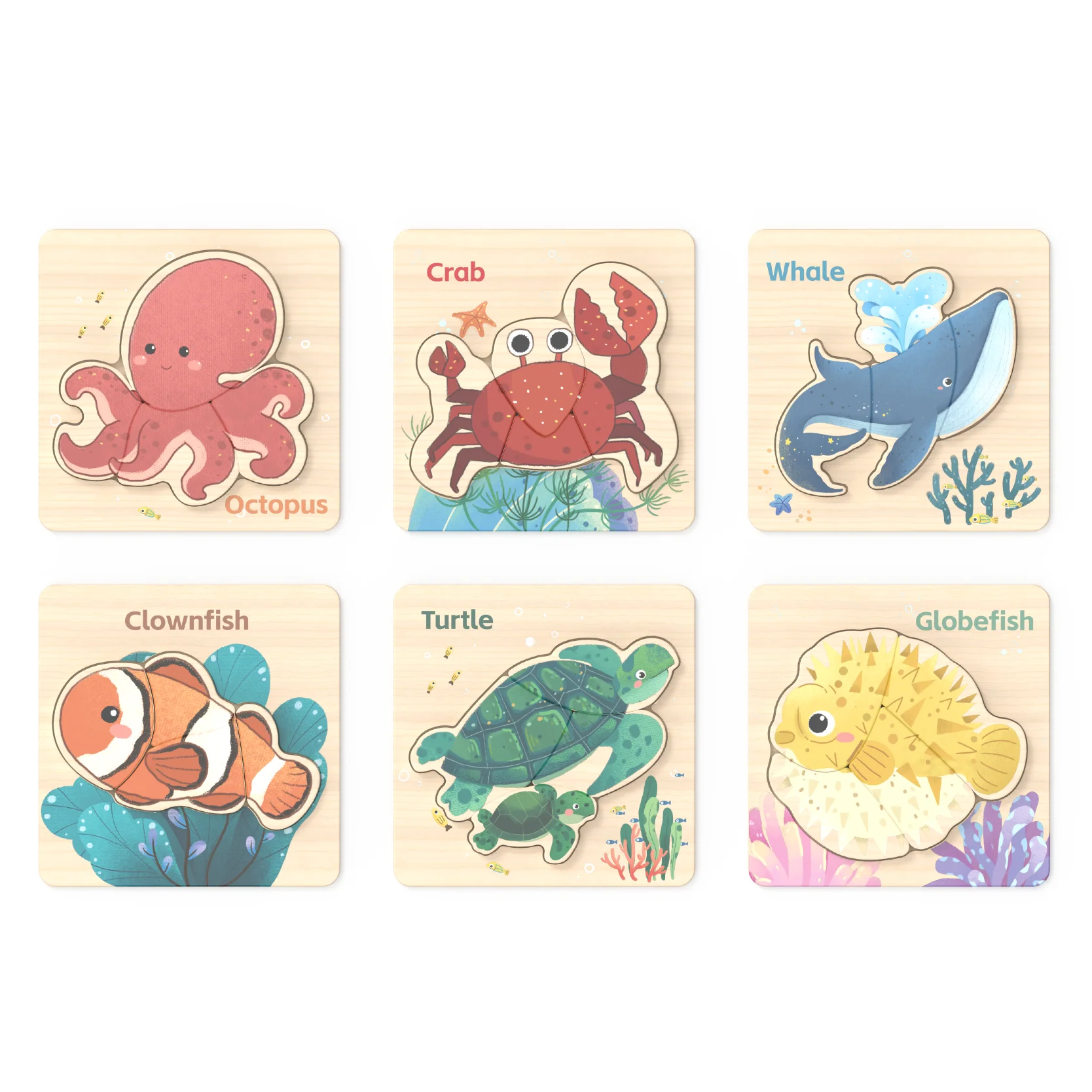 Modern Wooden Ocean Theme Puzzles for Unisex Kids 3-Year-Old Multifunctional Induction Educational Toy