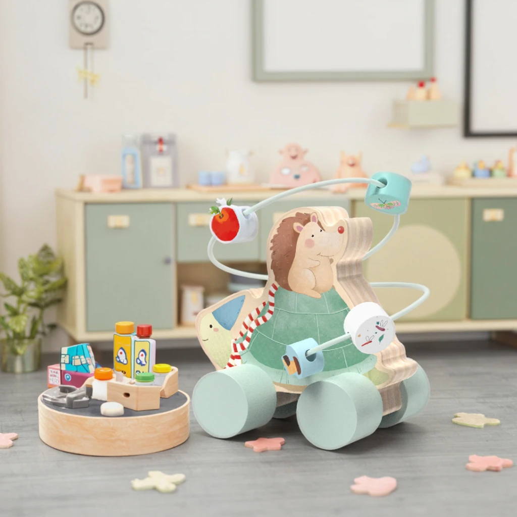 Toddler Toys Modern Unisex Educational Pull Along- Turtle and Hedgehog Toy Durable Wood Material for Kids 12M+