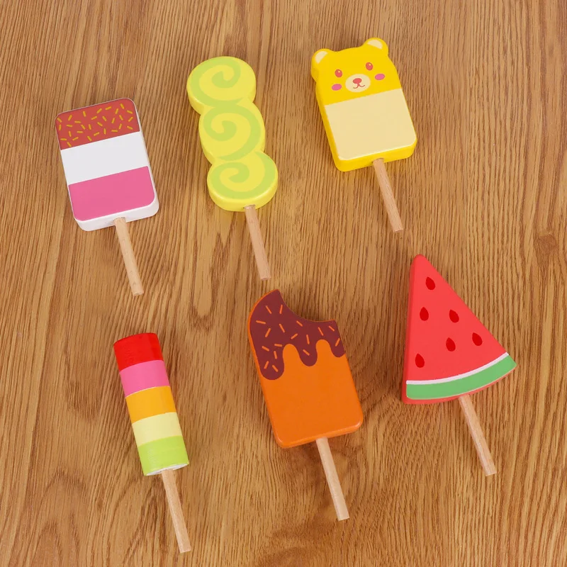 Colorful Wooden Toy Set for Kids Preschool Kitchen Play Ice Cream Shop with Bear Popsicle Educational Tool for Cooking Practice