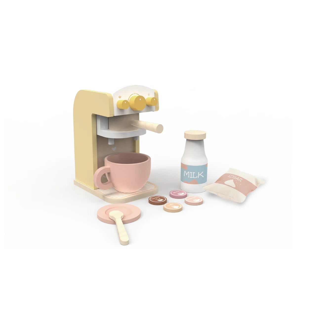 Unisex Multifunctional Wooden Kitchen Toy Set Cute Pretend Play Coffee Machine Wooden Toy