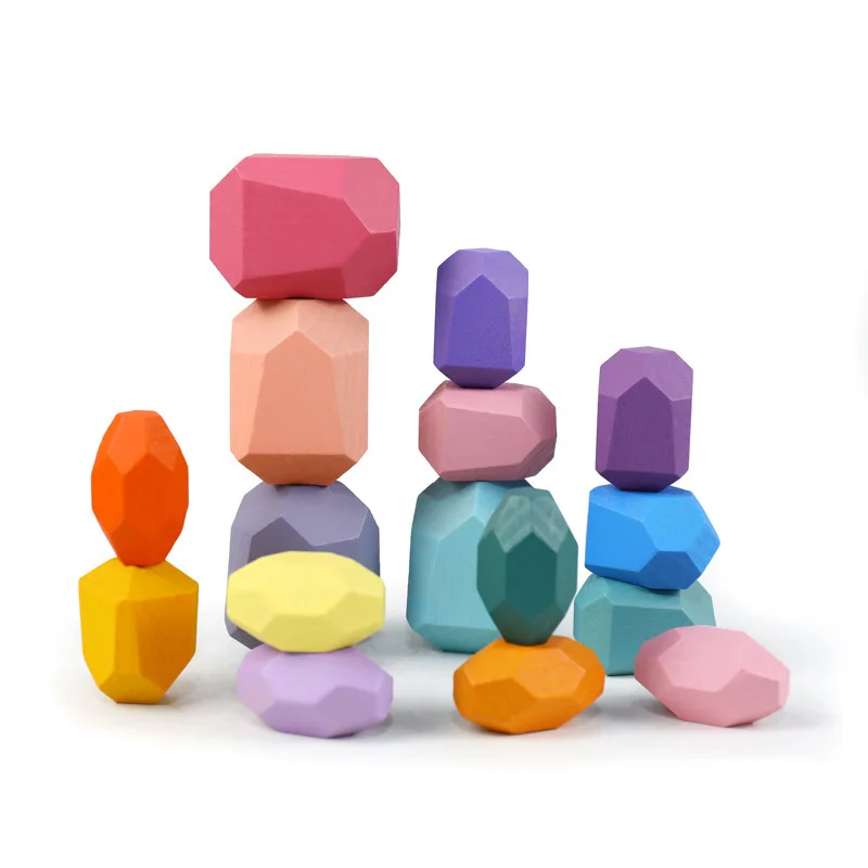 Hot Selling Wooden Rainbow Colored Stone Blocks Creative Puzzle for Children Color Cognitive Enlightenment Kitchen Food Toys