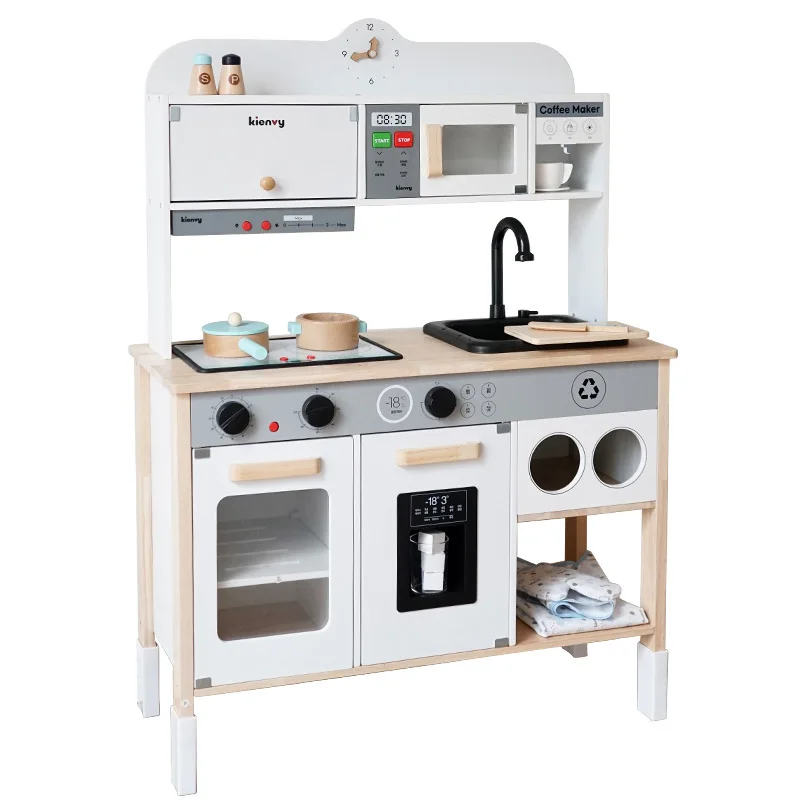 EDULAND Large MDF Wooden Kitchen Pretend Play Toy Set for Girls Simulation Cooking with Gift Box for Preschoolers