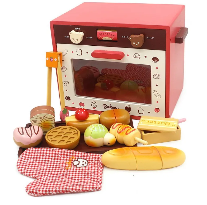 EDULAND Unisex Easy Bake Oven Toy Wood Kitchen Cooking Set for Kids Pretend Play Preschool Wooden Kitchen Toys in Box