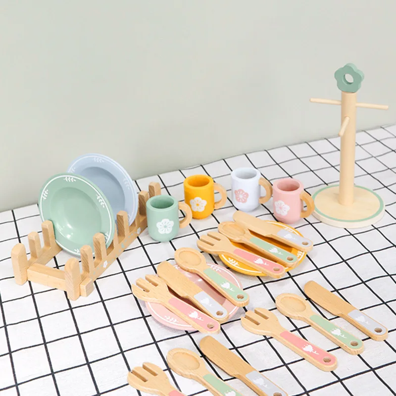 EDULAND Kindergarten Simulation Wooden Kitchen & Food Role-Playing Tableware Set Cross-Border Children's Early Education Toys