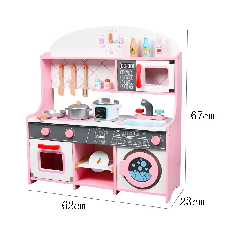 EDULAND Cute Pink Small Wooden Kitchen Stove Toy Set for Preschool Cooking Play-Unisex 5-7 Years Home Simulation Pretend Play