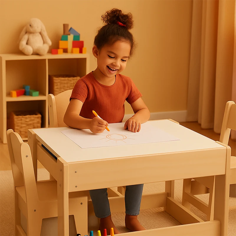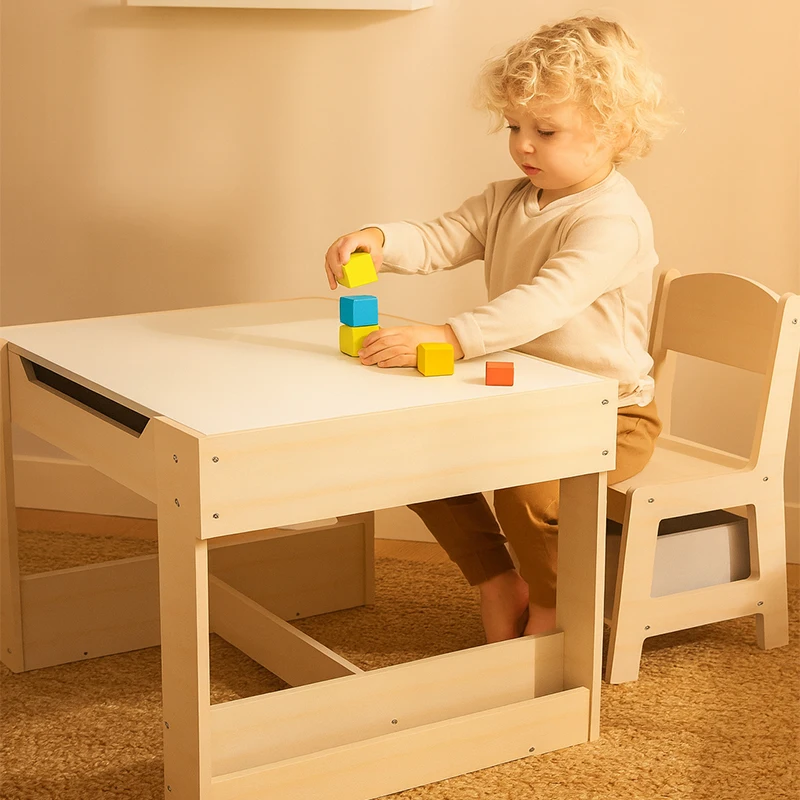 EDULAND Montessori Wooden Kids Table Chair Set School Preschool Storage Seating Nursery Study Reading Corner Eco-Friendly