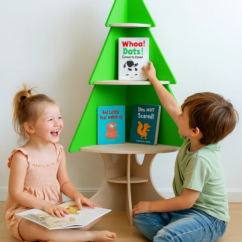 EDULAND Kids Bookshelf Toy Storage Organizer Solid Wood Tree Bookcase Eco-Friendly Safety Durable Easy Assembly Children's Room