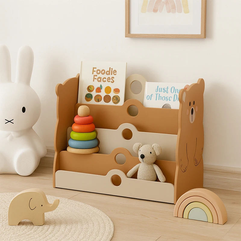 EDULAND Modern Wooden Bear Kids Furniture Set Bookshelf Safety Storage Organizer Montessori Toddler Living Room Kids Room