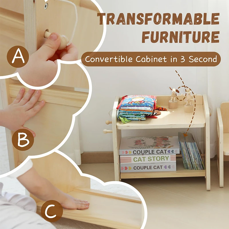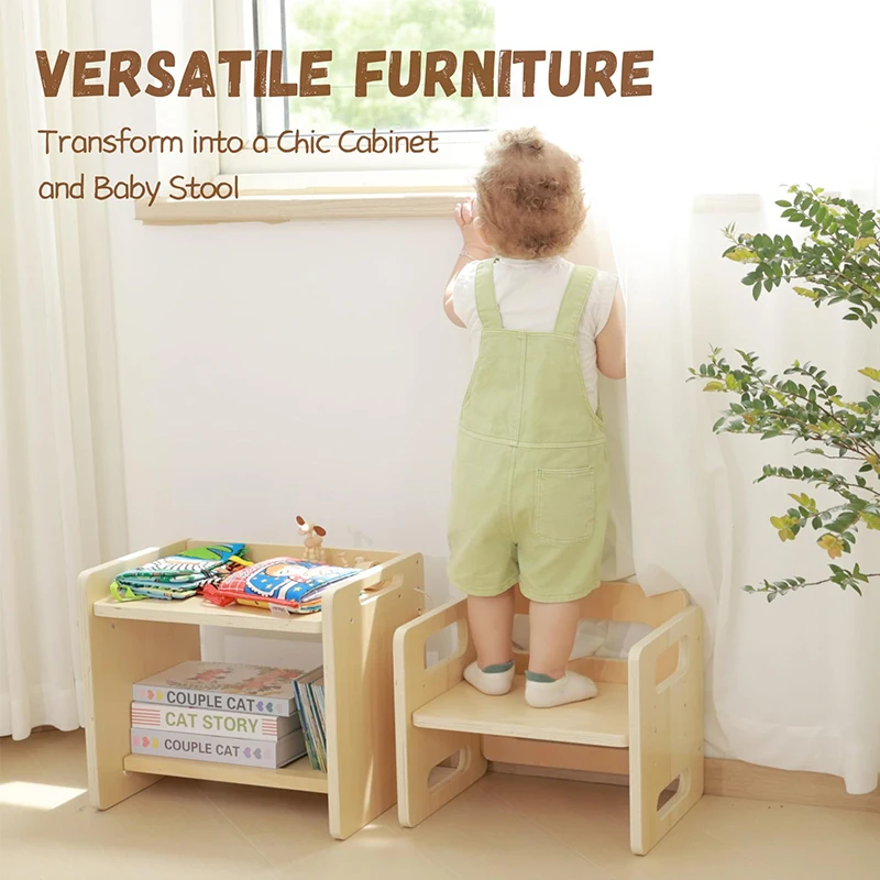 EDULAND Montessori Table Chair Set Natural Solid Wooden Activity Table and Cube Chair for Kids Study Toddler Weaning Furniture