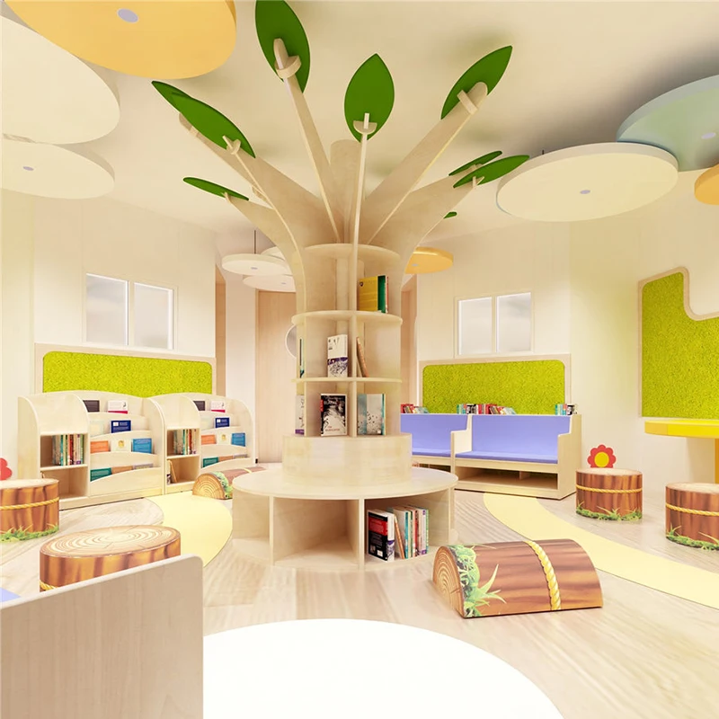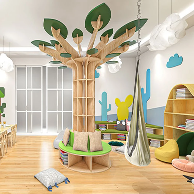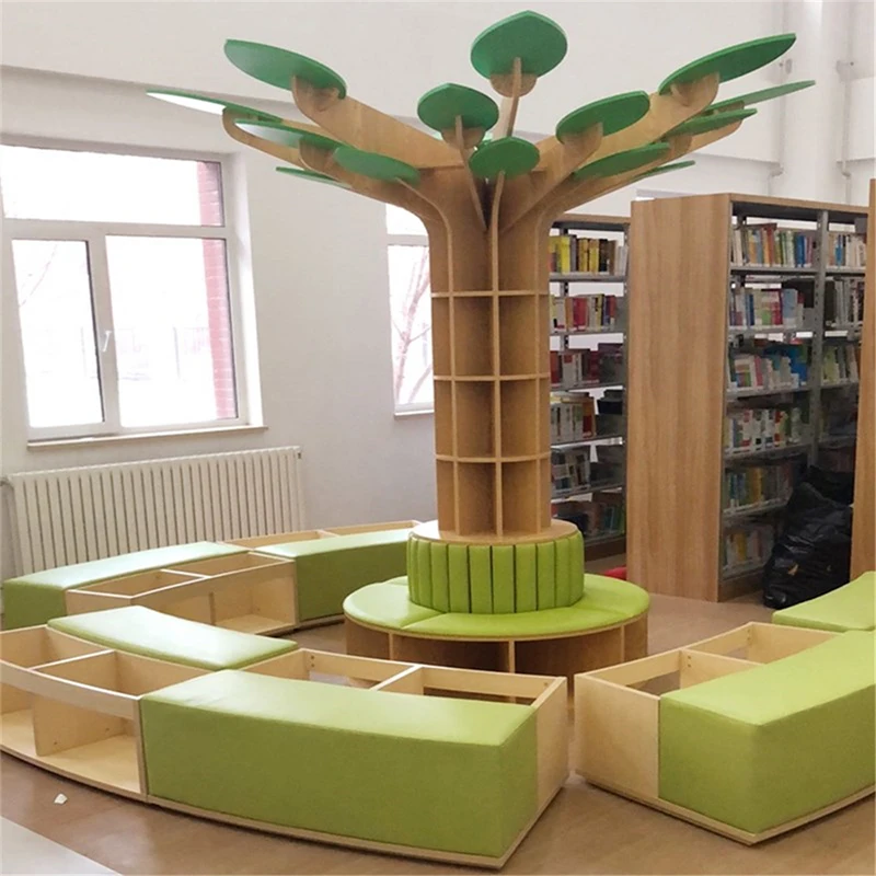 EDULAND Montessori Kindergarten Bookshelf Wood Library Reading Tree Furniture Cabinet for Daycare Childcare Center Preschool