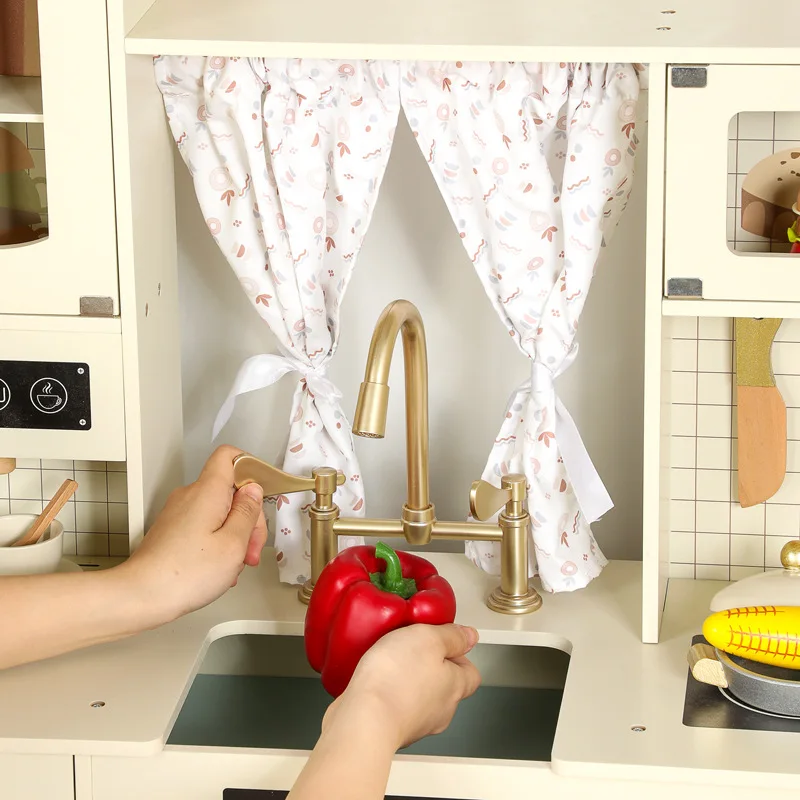 EDULAND Multifunctional Platinum Wooden Kitchen Play-house Simulation Oven Microwave Oven Washing Machine Food Toys for Children