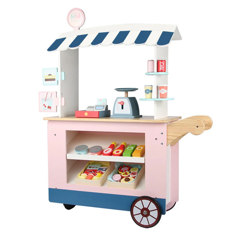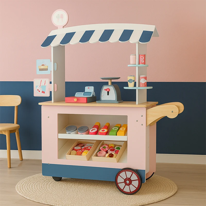 EDULAND Montessori Wooden Play Shopping Cart Kids' Early Learning Pretend Toy for Social Interaction Made From Natural Wood