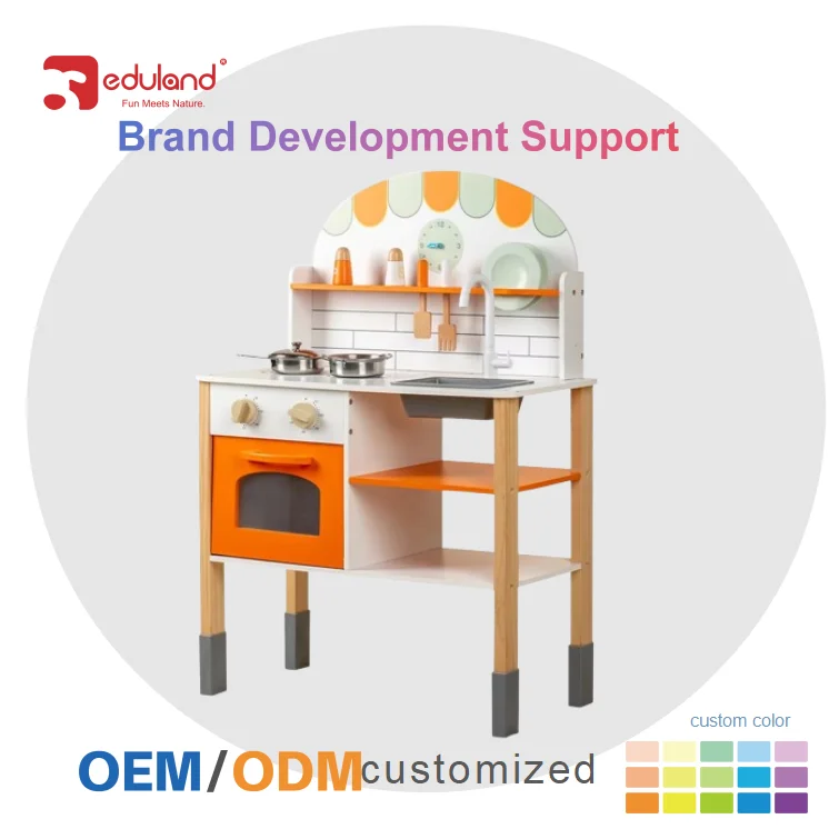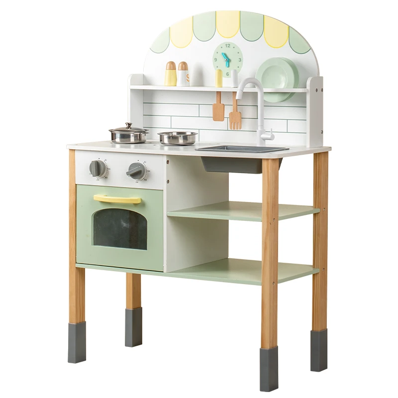 EDULAND Multifunctional Simple Big Wooden Kitchen Set Kindergarten Simulation Kitchenware for Children Baby Cooking Interest Toy
