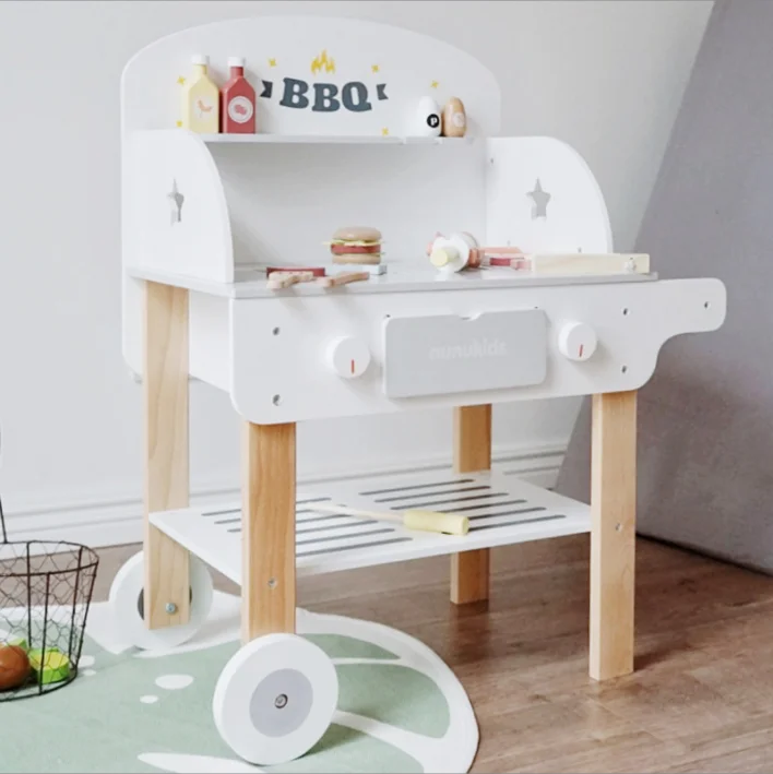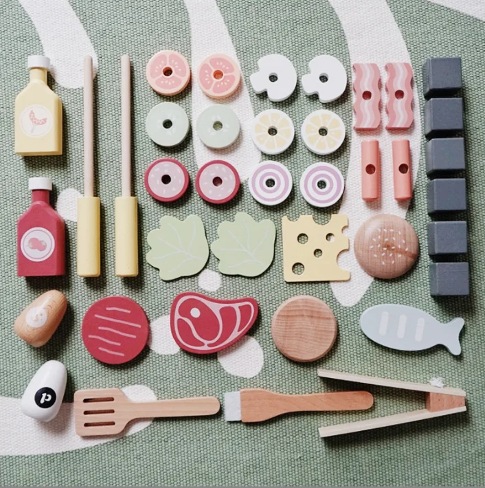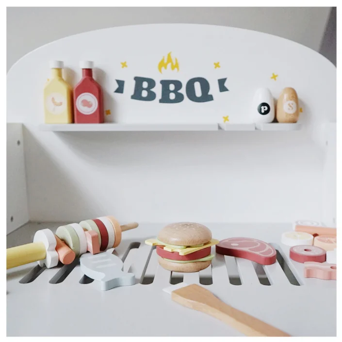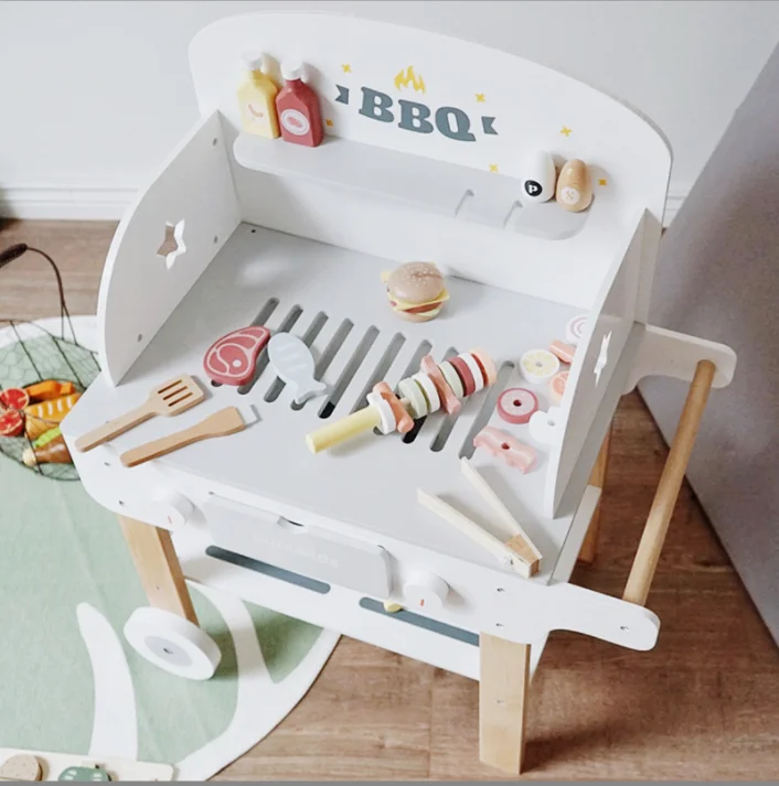 EDULAND Wooden Early Education Play Set Baby Simulation Barbecue Grill Kitchen Toy for Boys & Girls Food & Barbecue Simulation