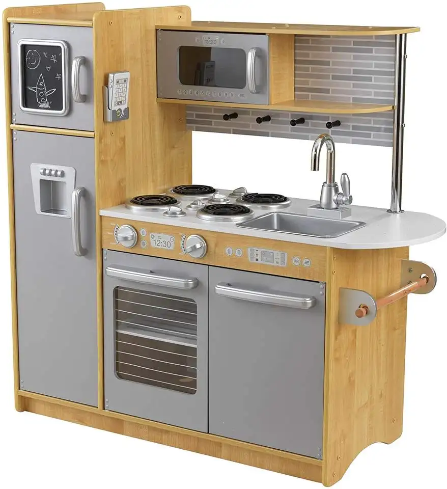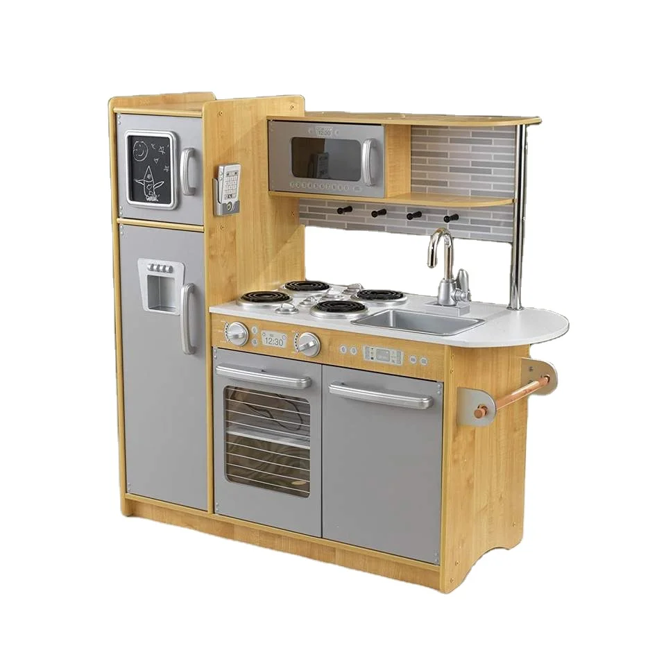 EDULAND Kids Educational MDF Wooden Cooking Game Pretend Play Set Kids' Wooden Kitchen Toys Including Refrigerator Toy