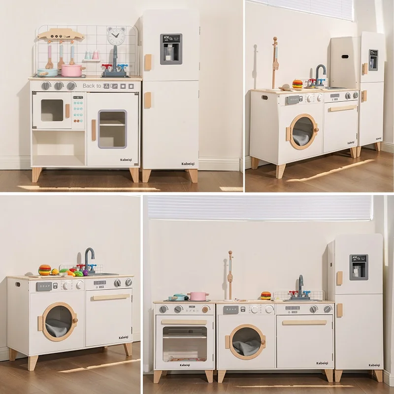 EDULAND Wooden Simulation Refrigerator with Sound & Light Effects Fun & Educational Home Role Play Kitchen Toy for Kids