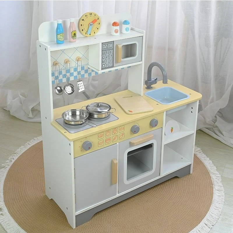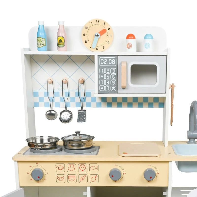 EDULAND Wooden Pretend Cooking Kitchen Set Educational Role Play Simulation Toy for Preschool Children Box Gift for Girls Kids