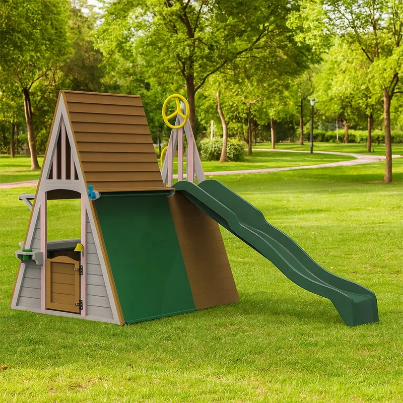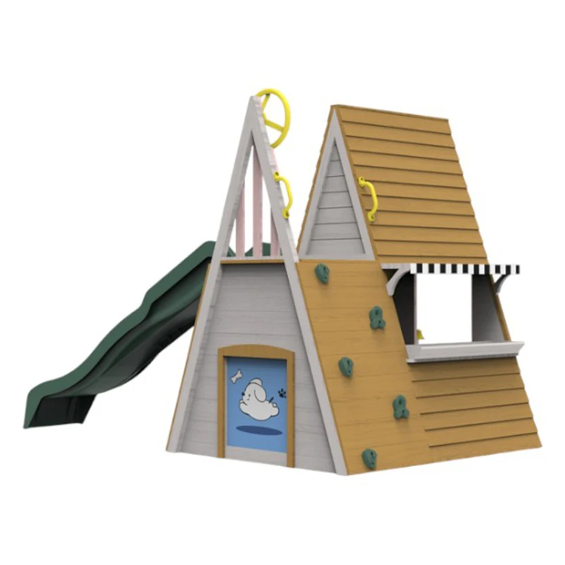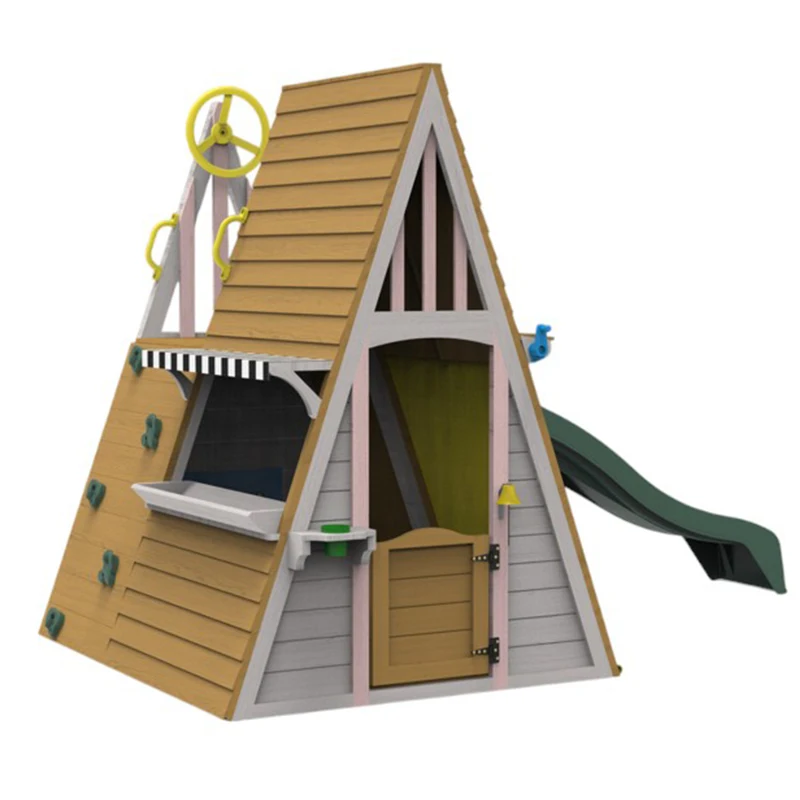 EDULAND Kids Outdoor Playground Equipment Triangle Montessori Wooden Castle Playhouse Slides Climbing Frame Amusing Recreation