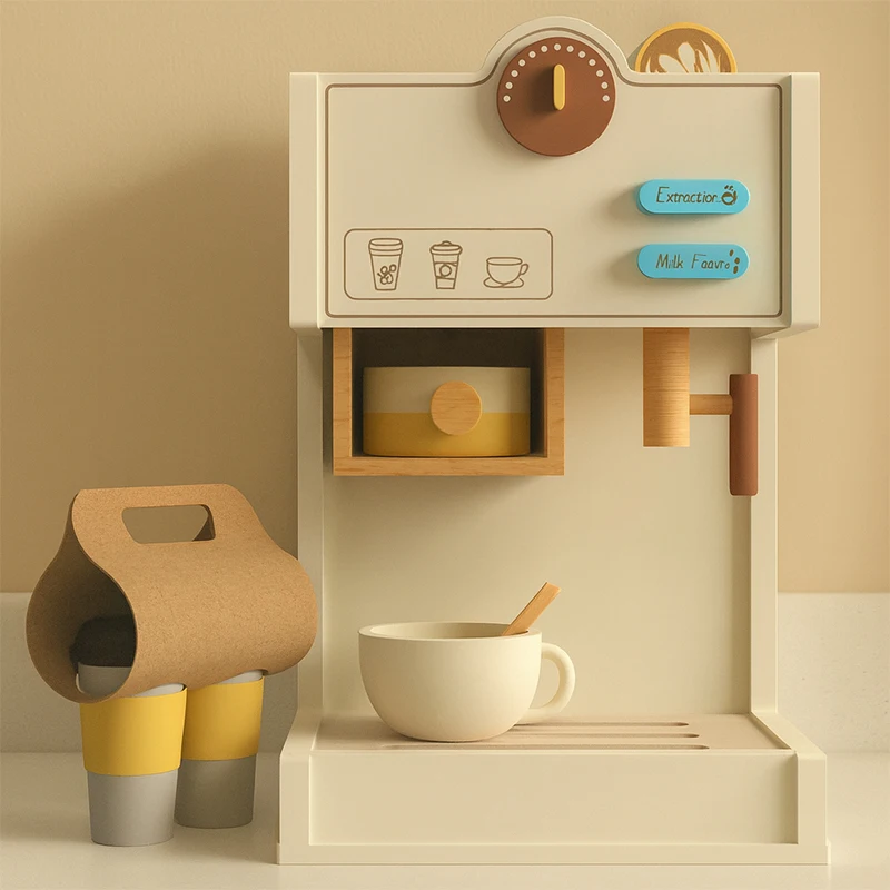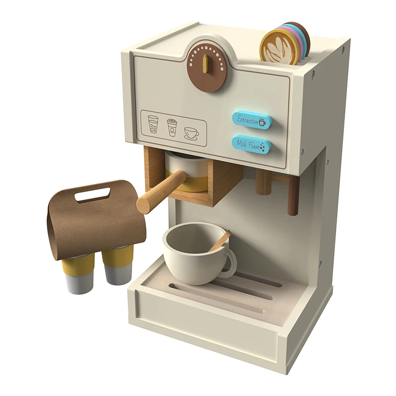 EDULAND Wooden MDF Food Toys Simulation Pretend Play Kitchen Toy Kids Mini Coffee Machine Early Education Learning Toys