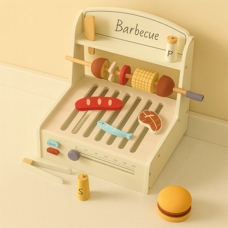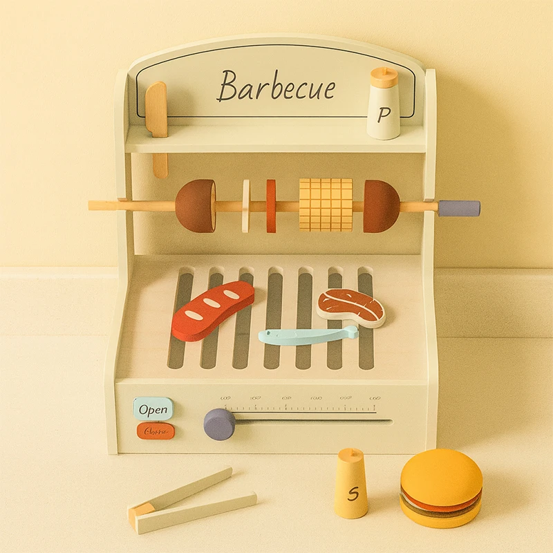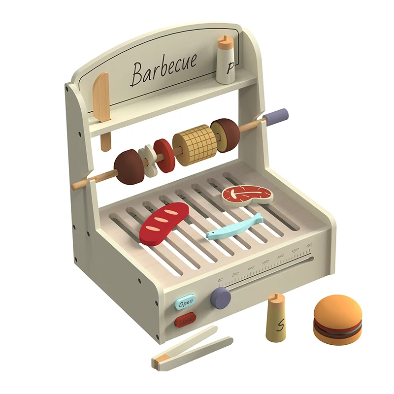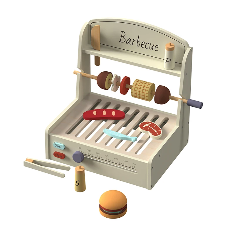 EDULAND Wooden BBQ Kitchen Set for Kids-Pretend Play Cooking Toy with Food Toys Children's Educational Simulation
