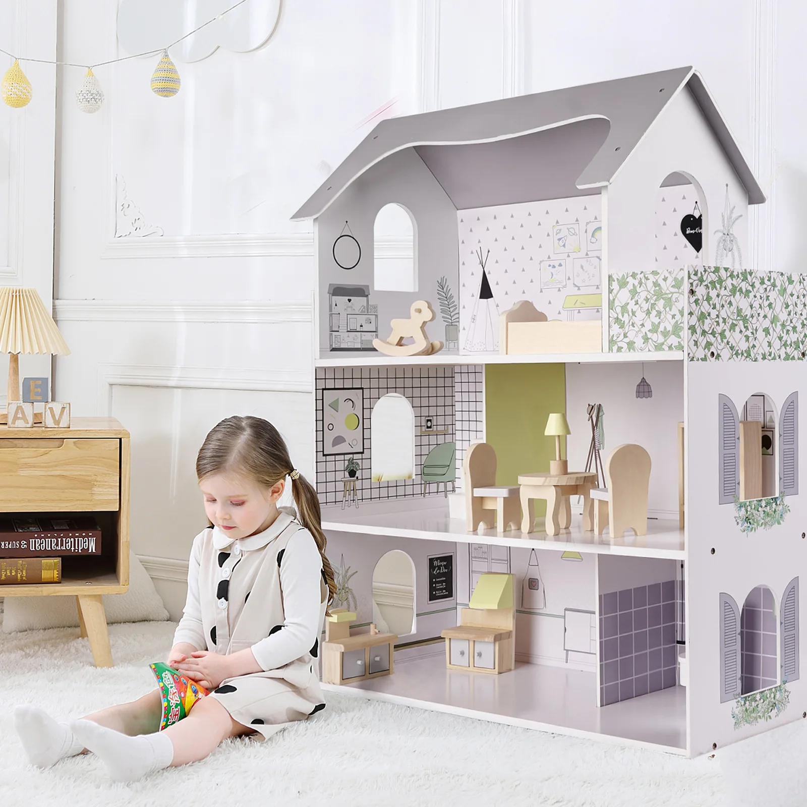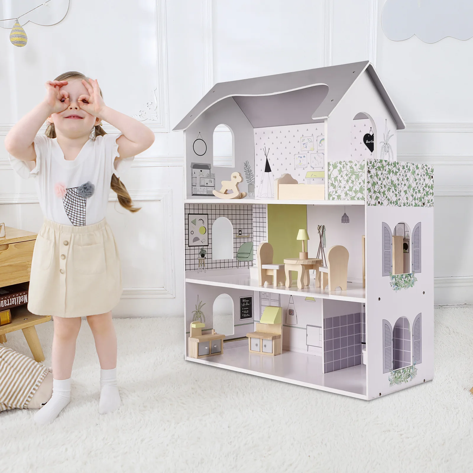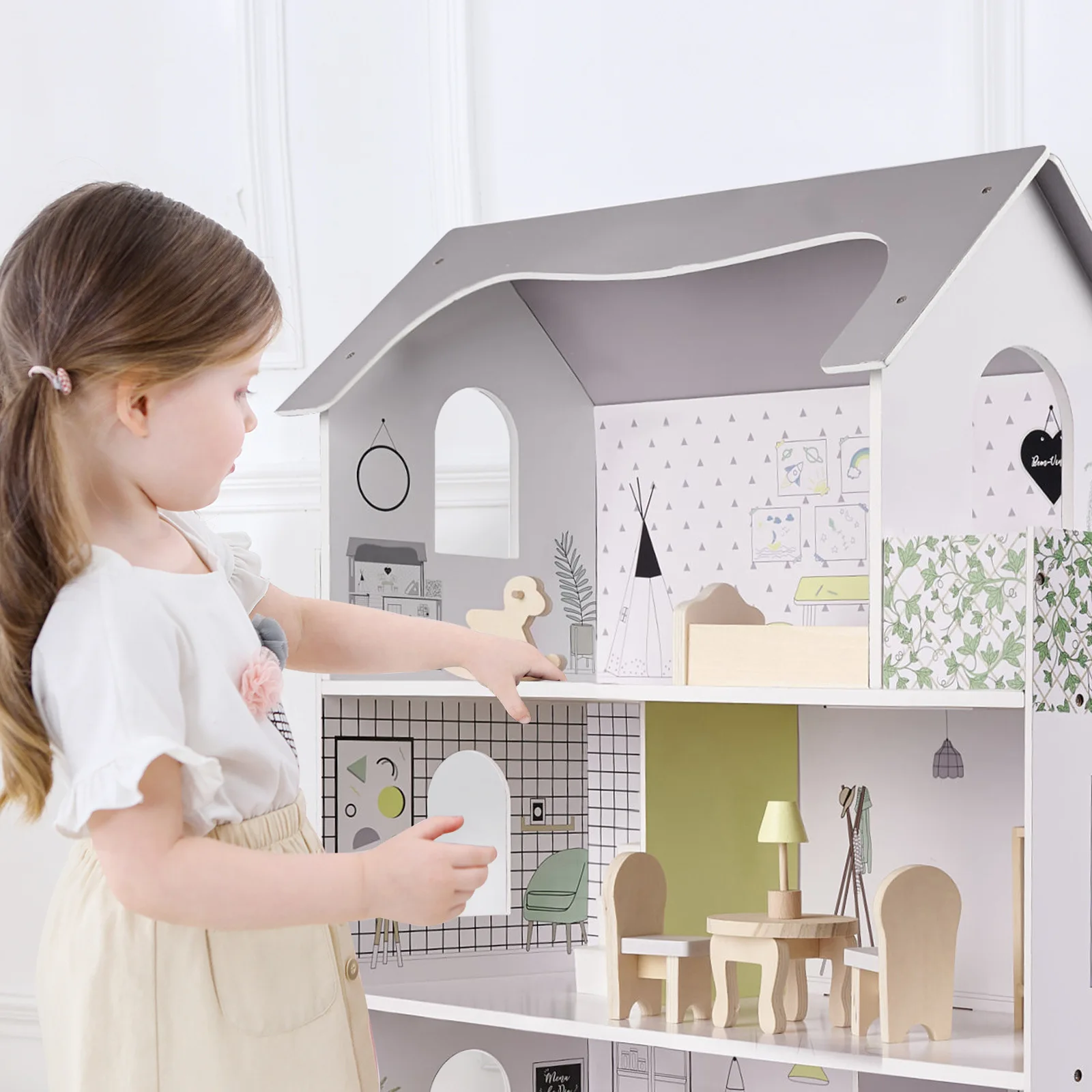 EDULAND Doll Wooden House Furniture Set Dollhouse Accessories Pretend Play Furniture Toys for Boys Girls & Toddlers Wooden Toys