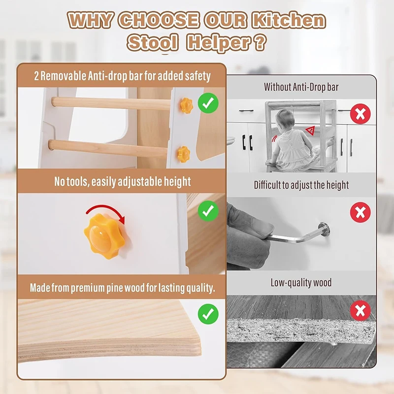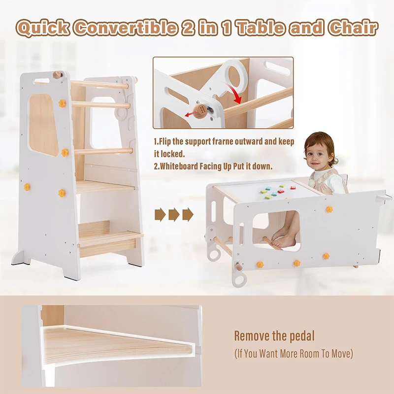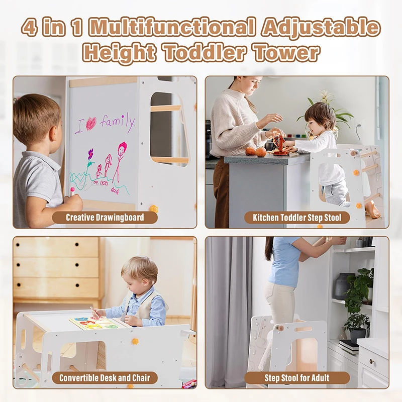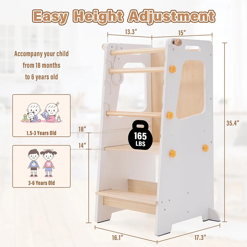 EDULAND Montessori Wooden Kitchen Helper Step Learning Tower Modern Design Entry Level Adjustable Height for Kids