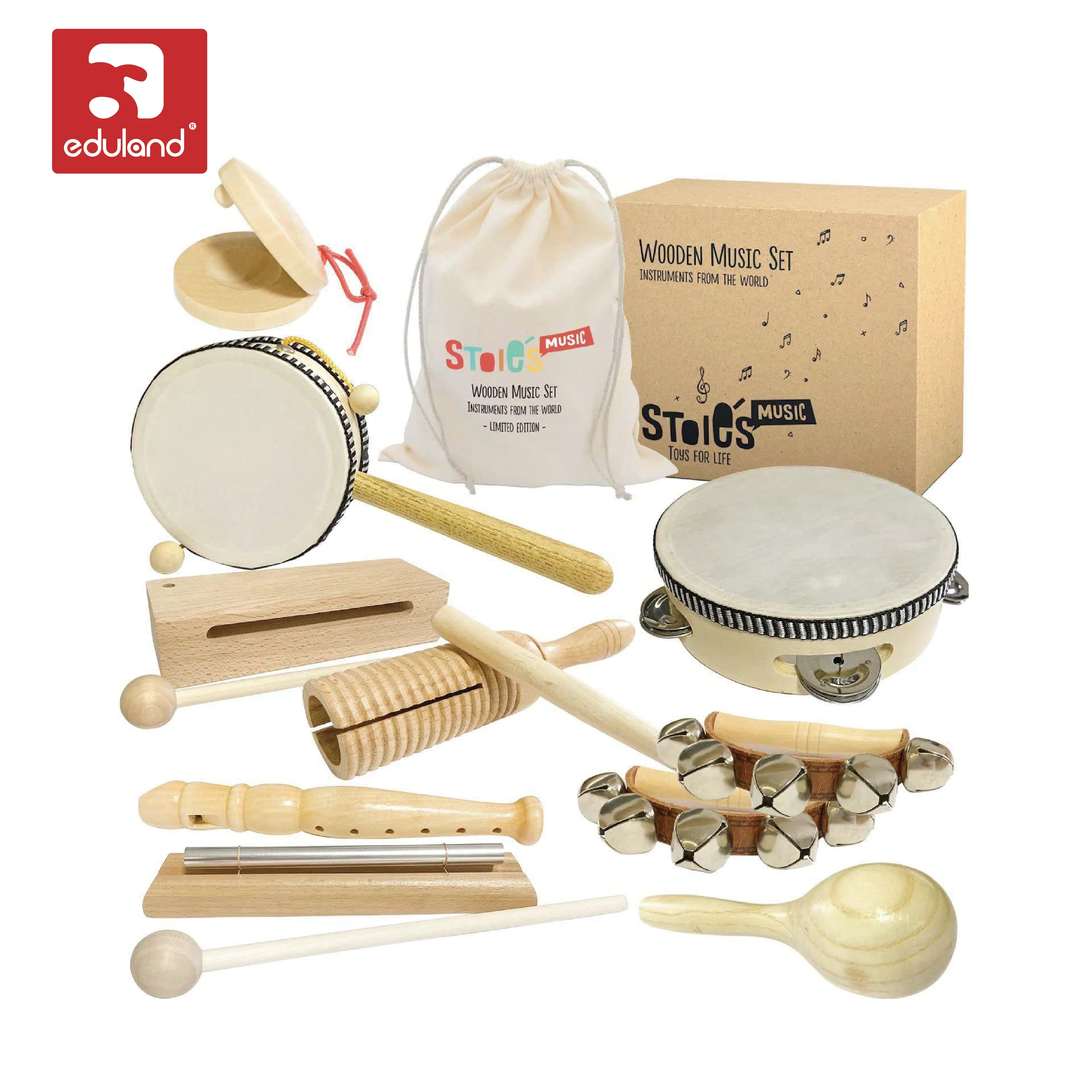 EDULAND Montessori-Inspired Wooden Musical Instrument Pretend Play Toy for Toddlers Baby Rattles Natural Wood Kids Music