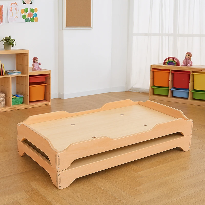 EDULAND Eco-Friendly Wooden Toddler Bed Set Modern Design for School Use Stackable Floor Bed with Montessori Features