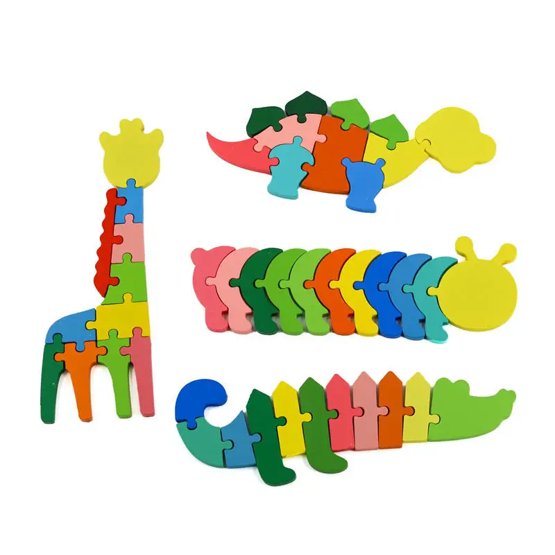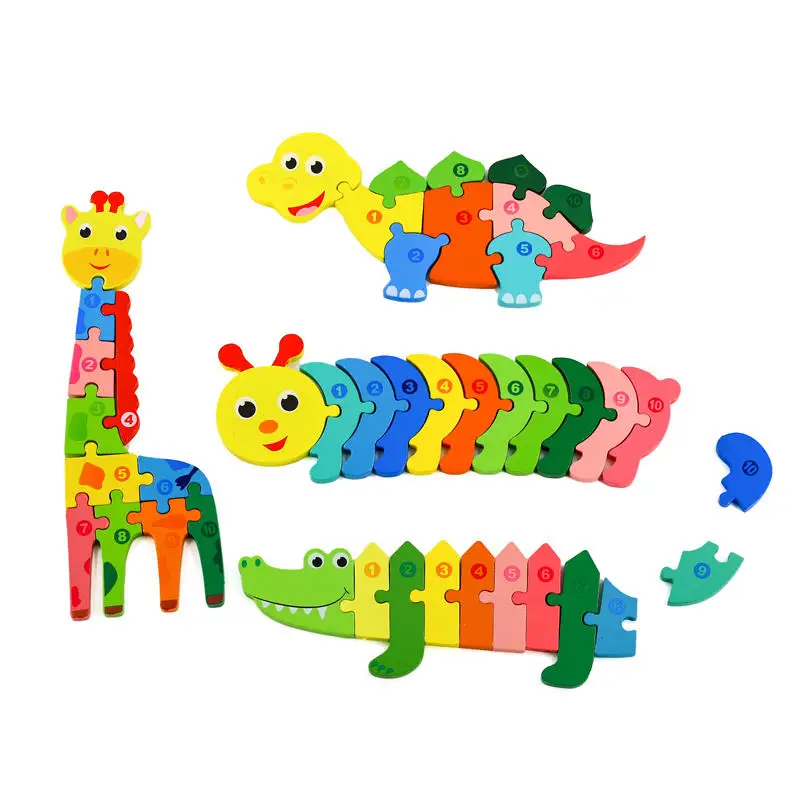 EDULAND Wooden Preschool Jigsaw Puzzle for Kids 3d Puzzles Montessori Toys Cartoon Learning Dinosaur Animal Educational Puzzles