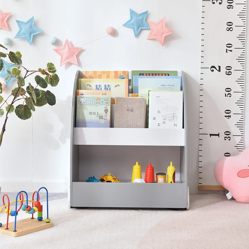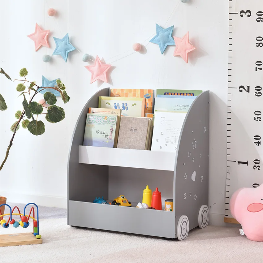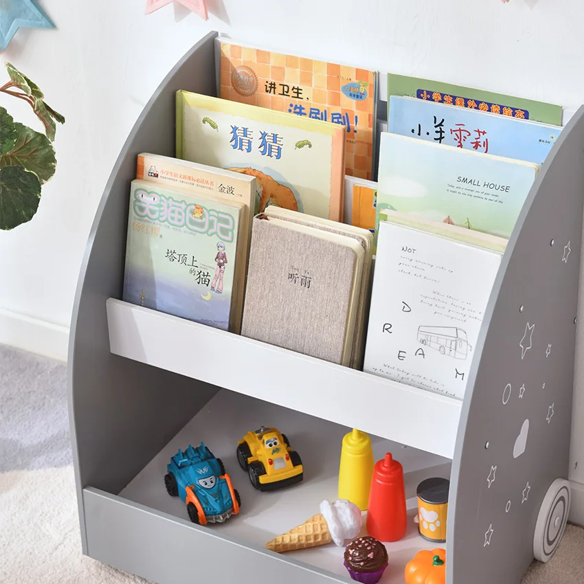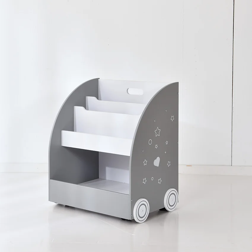 EDULAND Modern Children's Montessori Solid Wooden Wheeled Bookcase Toy Shelf Multi Purpose Organizer for Children's Room